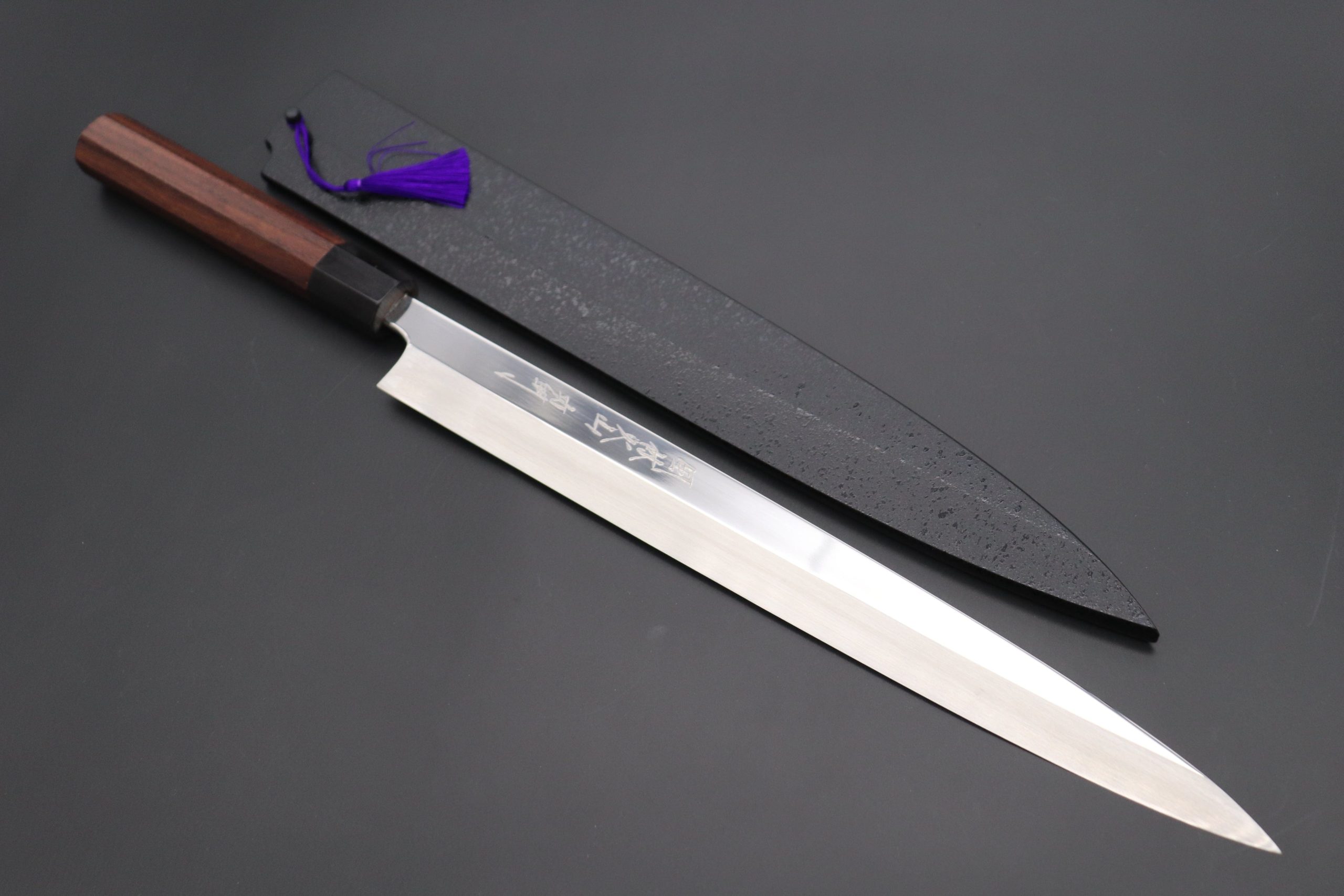 Fu-Rin-Ka-Zan Limited, Hon Kasumi HAP-40 Yanagiba (300mm or 330mm, 2 Sizes, Perfectly Mirror Polished Blade, Octagonal Red-Sandal Wood Handle)