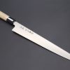 The long, narrow, graceful blade of the Sujihiki is particularly useful for trimming away sinew and fat from meat, finely slicing meat or boneless fish, or for filleting and skinning fish. The long blade allows the meat or fish to be cut in one single drawing motion, from heel to tip.