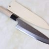 This knife has a unique natural wooden texture of octagonal Bocote wood handle, which has a buffalo horn ferrule.(Sukenari carefully selects the Japan’s Premium Wa Handle craftsman for handcrafting this premium wood Wa Handle). For safekeeping, this knife comes with a matching Black Lacquered Wood Saya (Sheath) with a black pakkawood Saya pin.