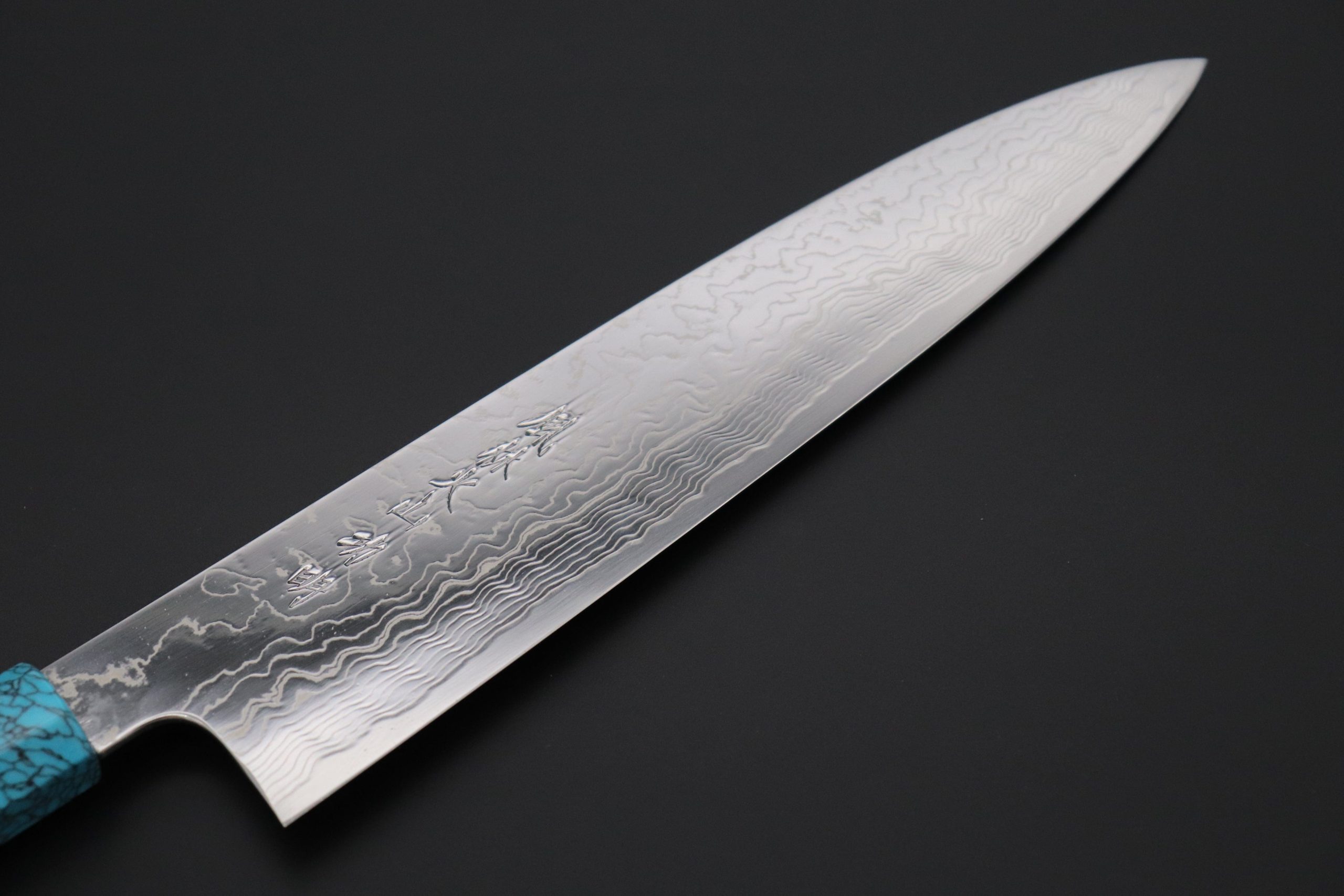 To enrich your cooking experience and suit a wide variety of needs and preferences, this Fu-Rin-Ka-Zan R-2 Clad FRDYP-33 Wa Gyuto 240mm features an Innovative Octagonal Turquoise Composite Stone.