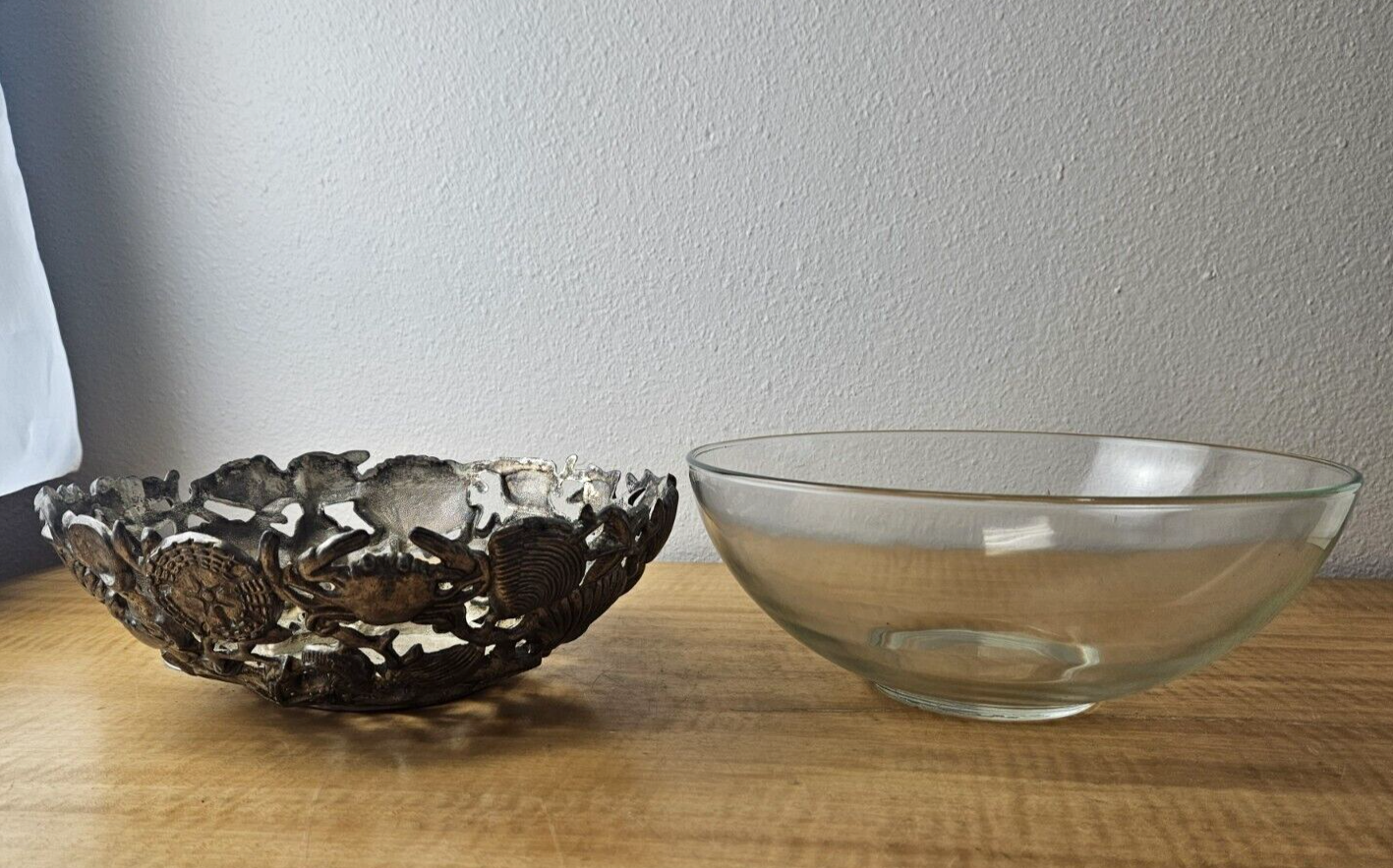 Godinger Silver Art, Co Seashell Bowl Set silver plated bowl and glass bowl 10″