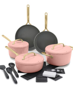 This do-it-all set brings a sleek style to any kitchen with no compromise in performance. Each piece is constructed from heavy-gauge aluminum and coated in our Infinite8 ceramic nonstick. Plus, the induction ready design delivers quick and even heating on any stovetop.
