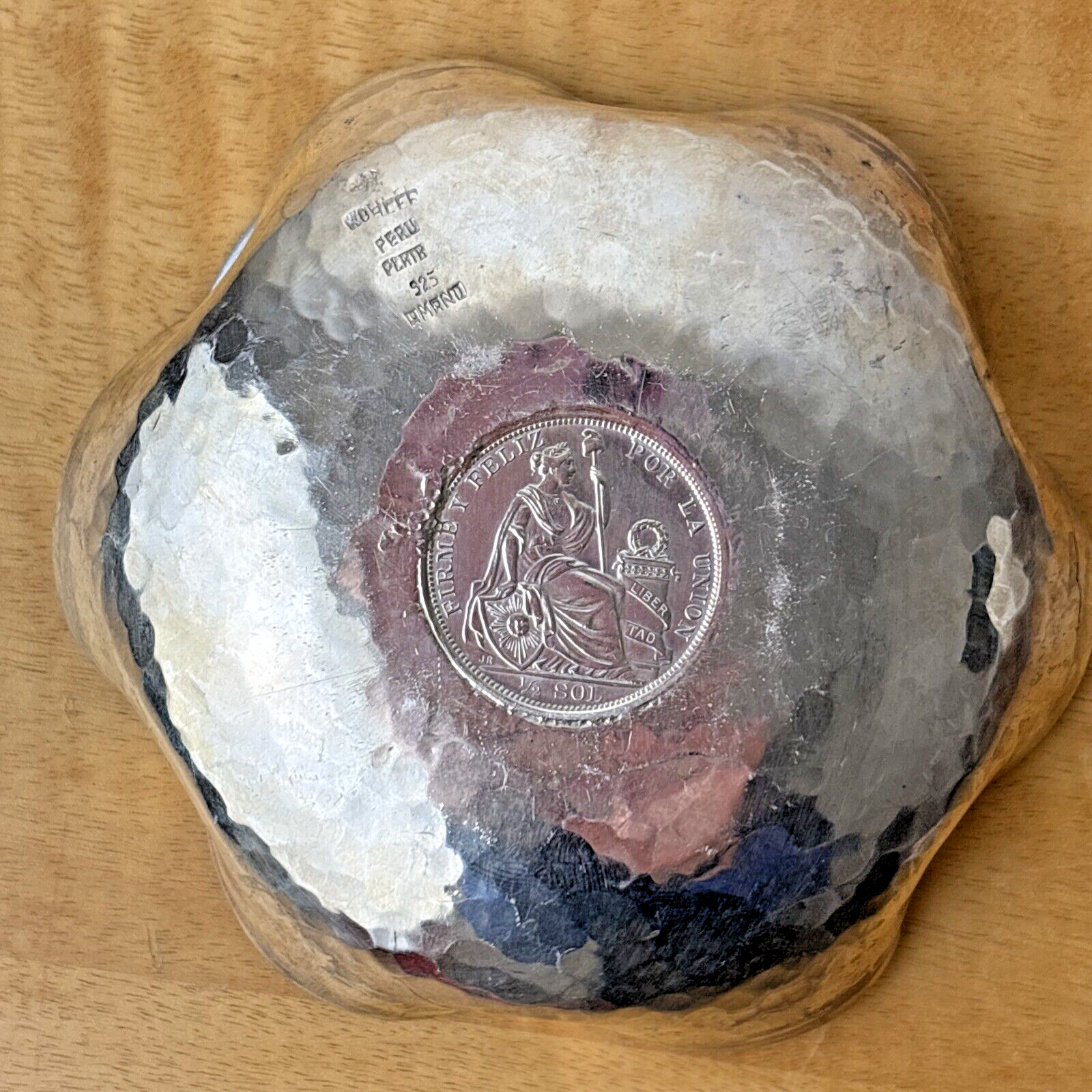 Hammered Silver 925 Bowl, Commemorative Coin of Peruvian Republic