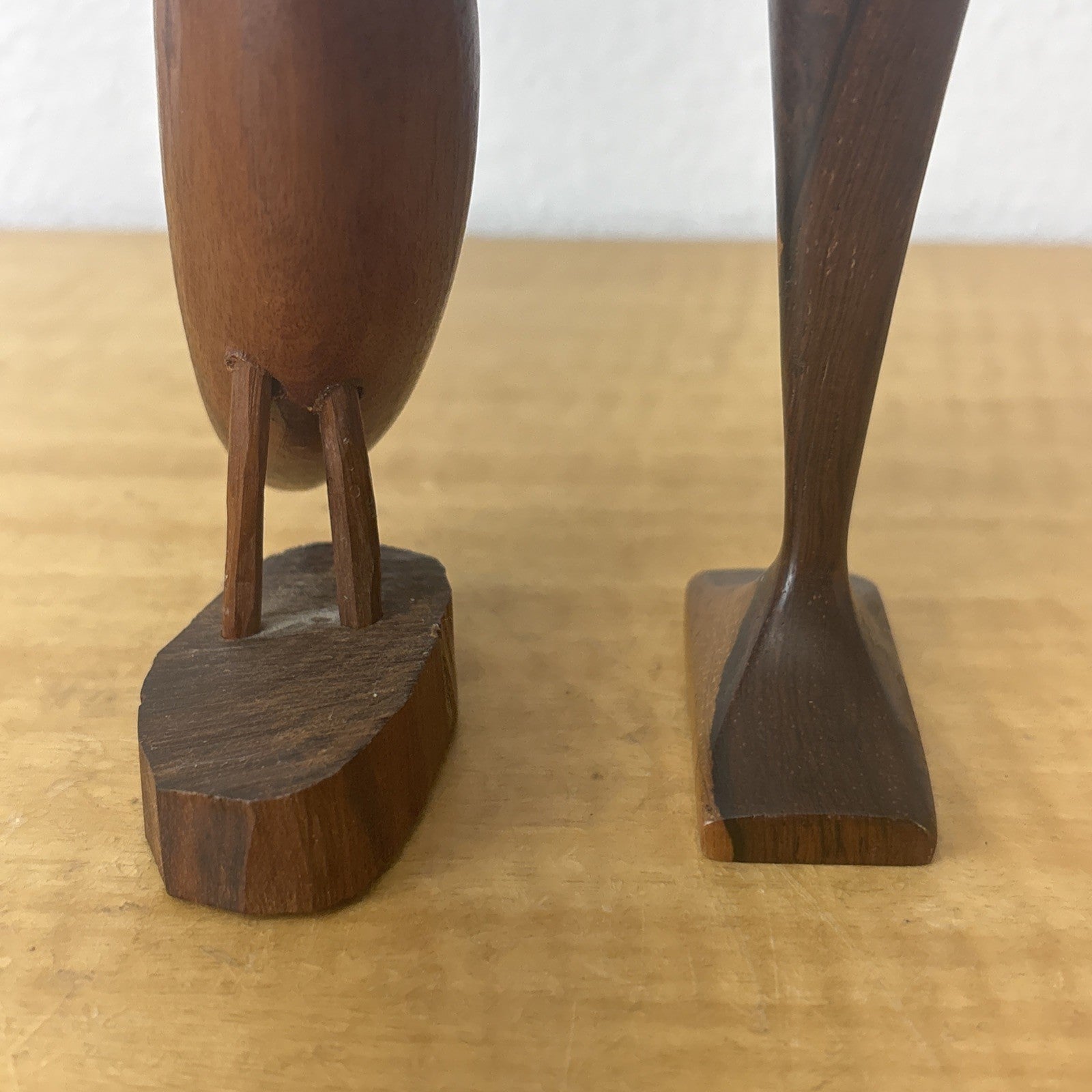 Hand Carved Wood Egret Bird Heron Statue Set of 2