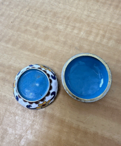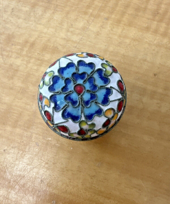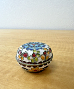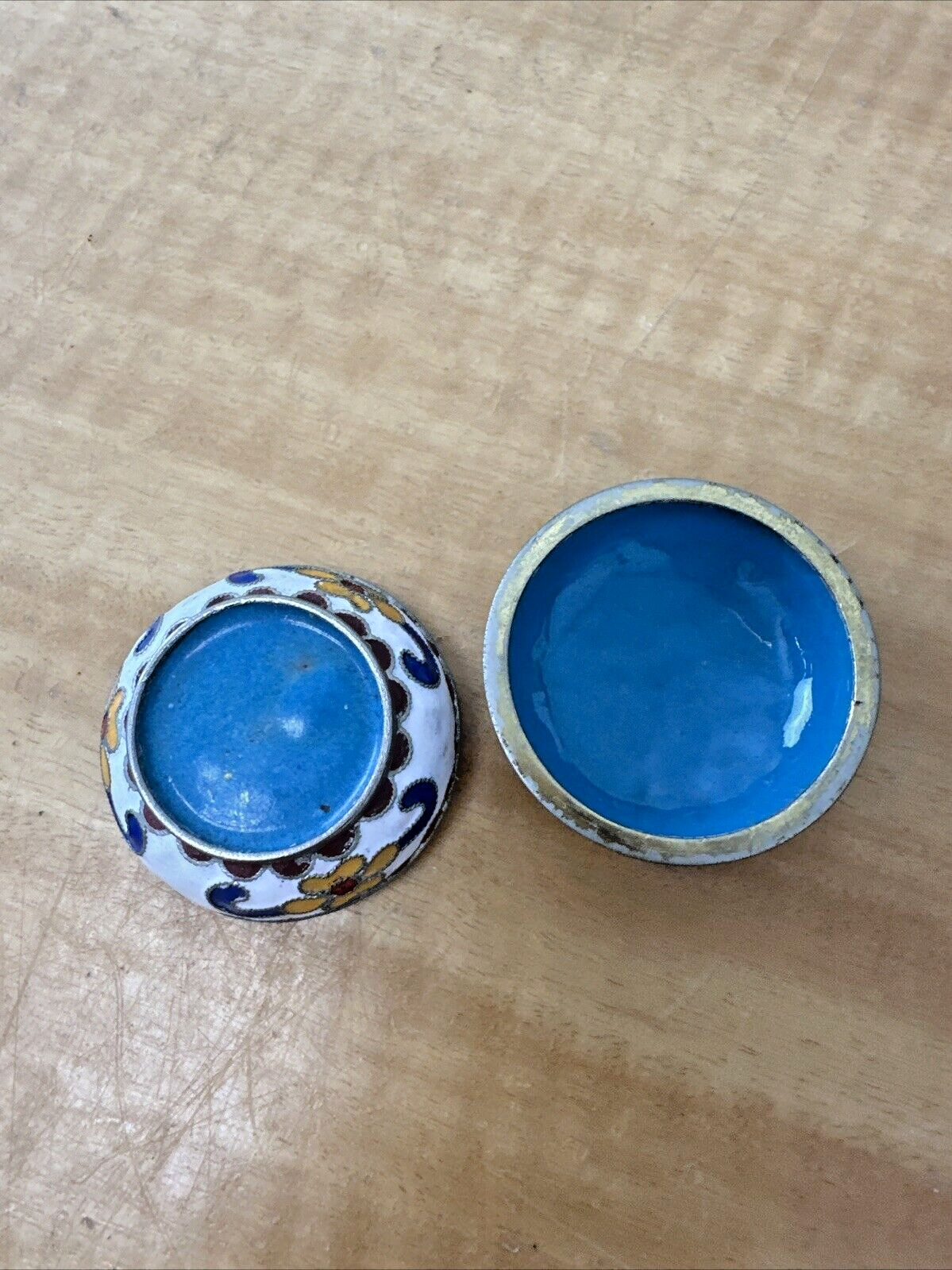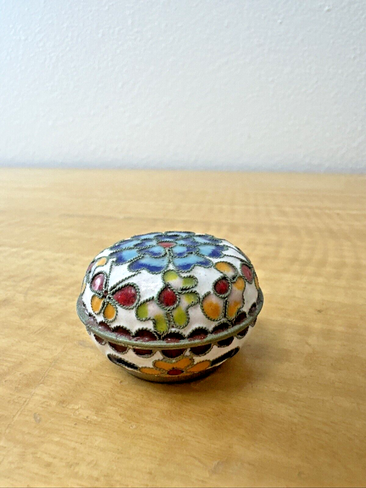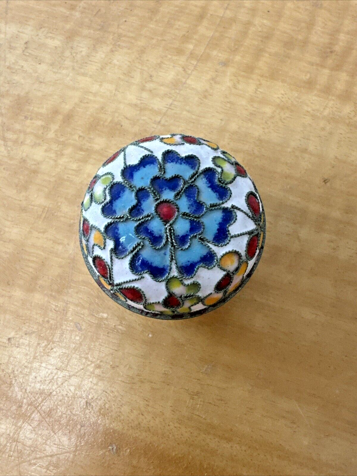 Hand Painted Cloisonne Enamel Trinket Box Domed Lid Floral Motif 2 1/8”