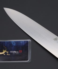 We have closely worked with Hattori to create the the SAN-GECKO special edition, limited quantity, 210mm San-Mai Gyuto knives utilize the reputable High Quality Japanese Stainless Steel. VG-10.