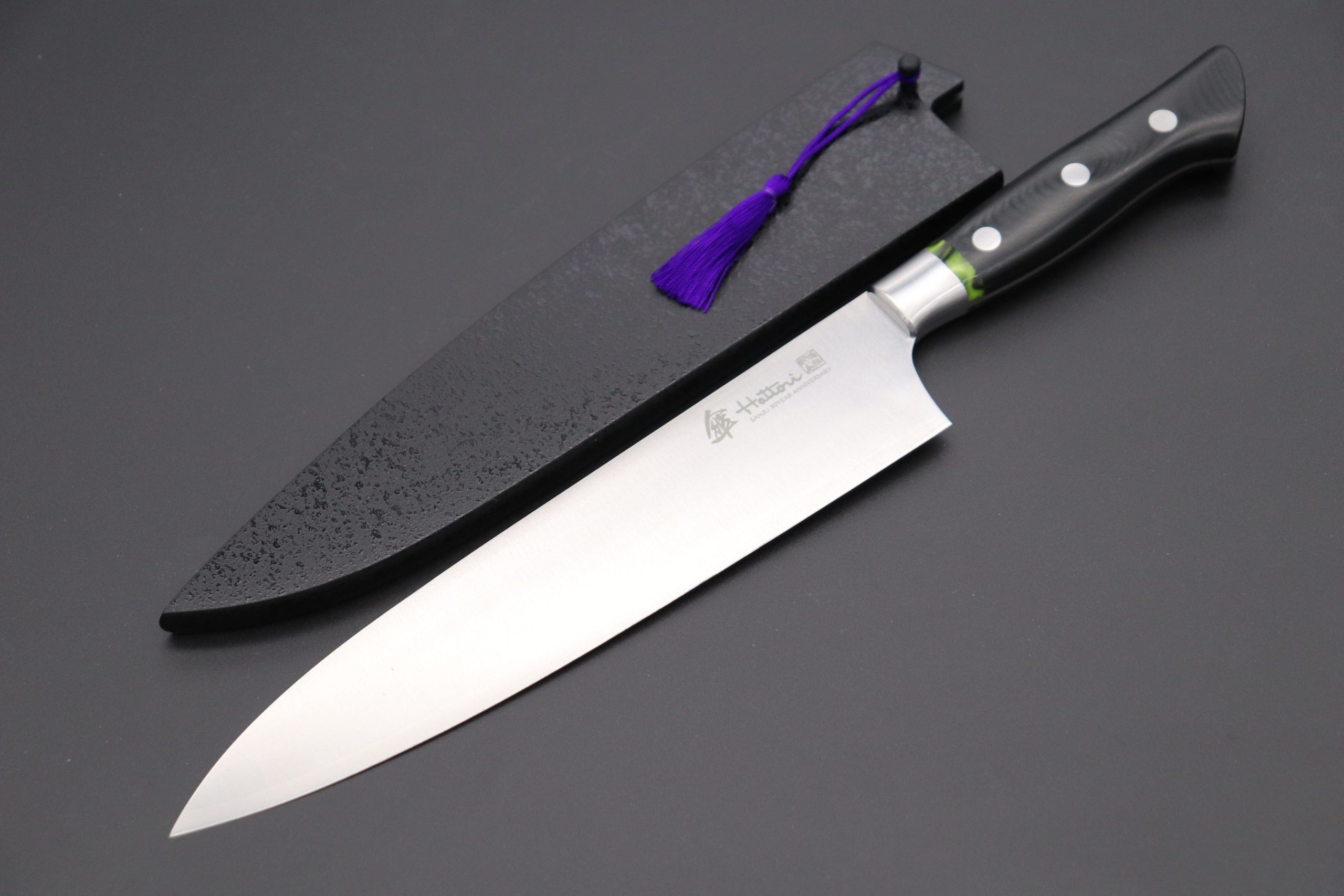Knife Model: Hattori 傘 SAN-GECKO Limited Edition GECKO-22A Gyuto 210mm (8.2 Inch, Linen Micarta/Lime Green Hybrid-Resin Handle)