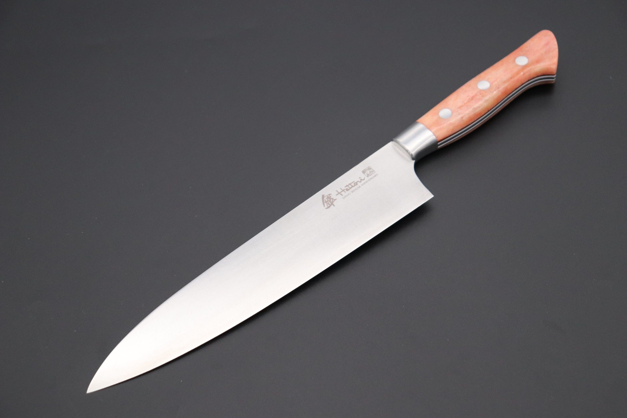 Hattori 傘 SAN-GECKO Limited Edition GECKO-6A-6 Gyuto 210mm (8.2 Inch) with Suuny Orange Camel Bone Handle.
