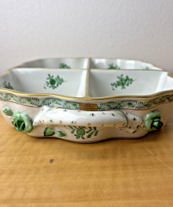 Herend Hungary Chinese Bouquet Green Hand Painted Divided Porcelain Dish