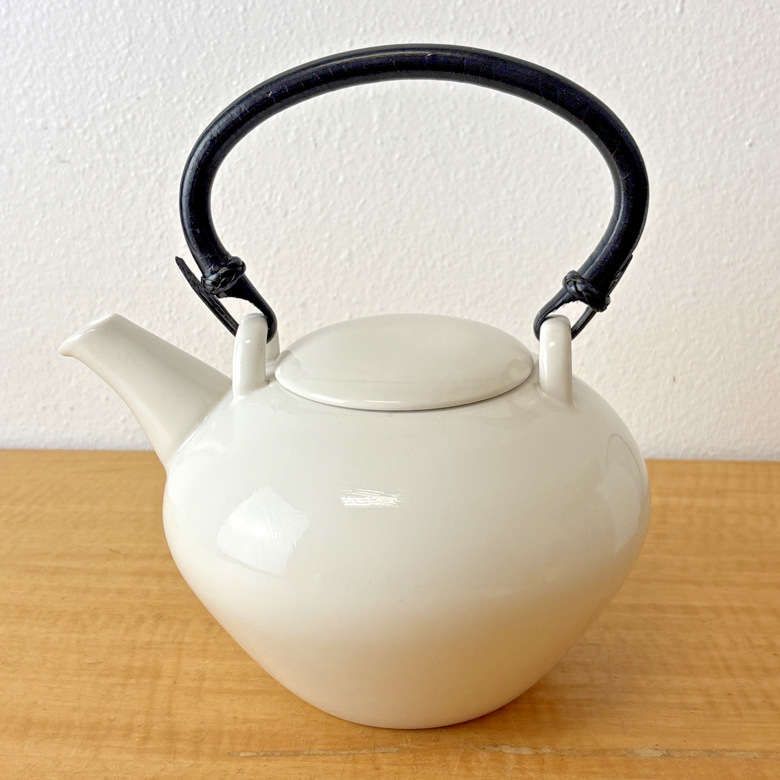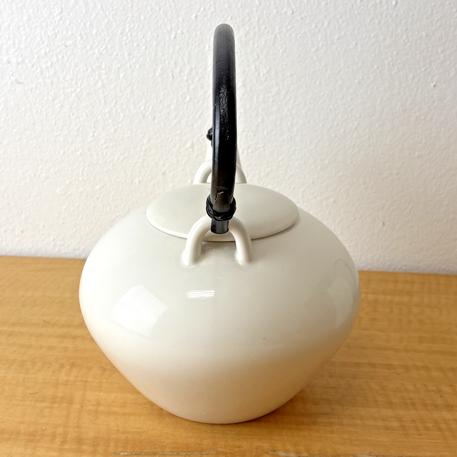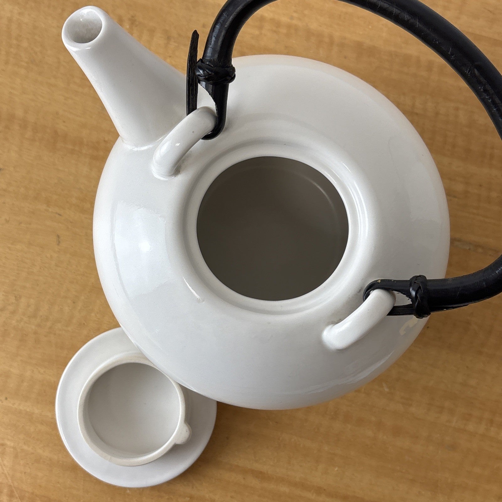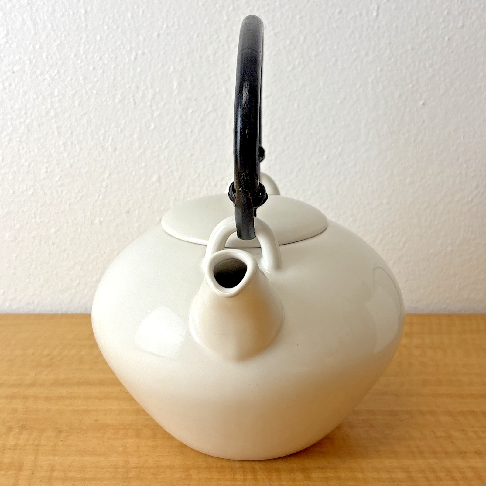 Hoganas Ceramic Sweden Boda Nova Tea Pot Teapot White Black Handle
