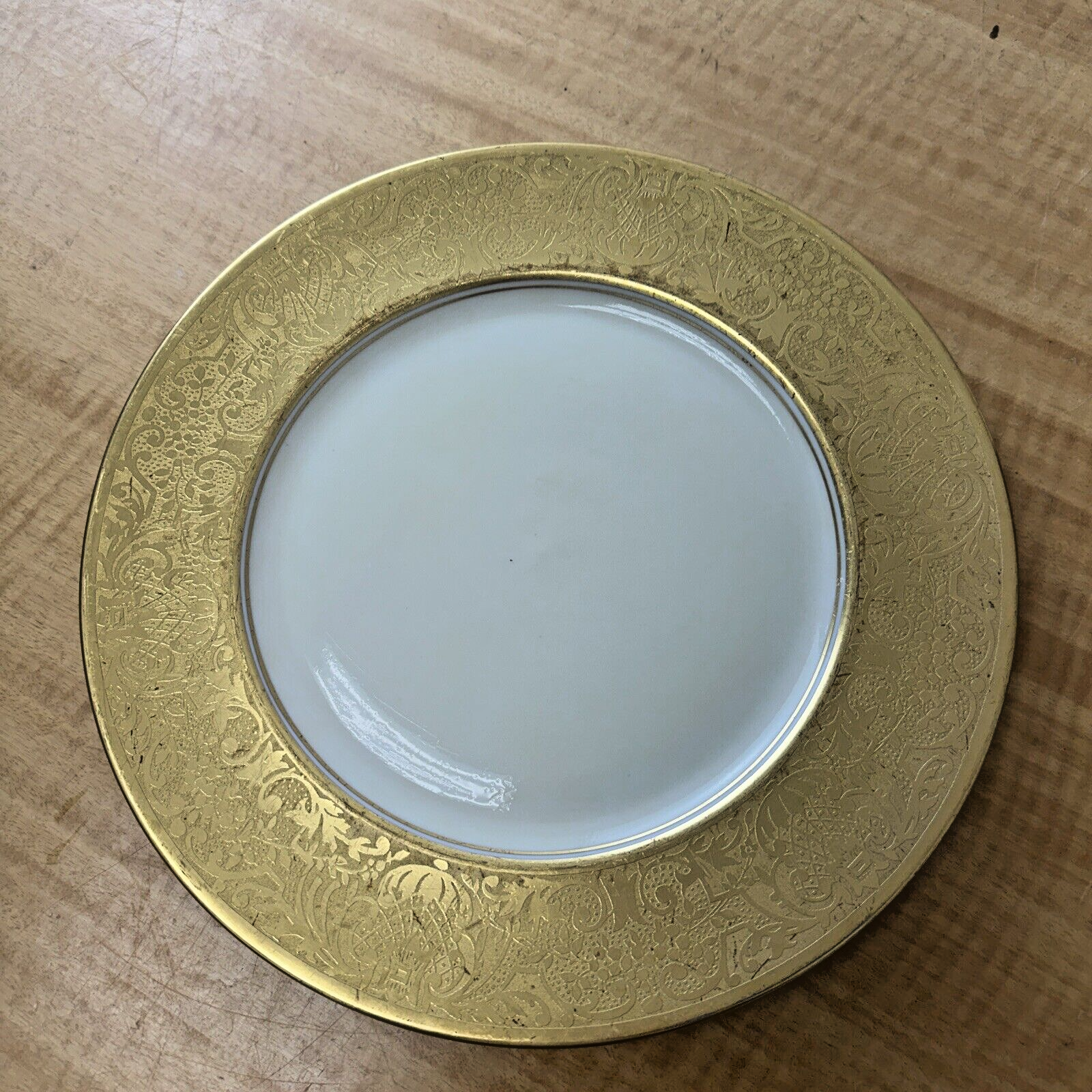 Hutschenreuther Selb Bavaria Gold Encrusted 10.75 Dinner Plate Etched Border