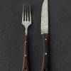 Exquisitely crafted by damascus artist and bladesmith Ian Rogers, this pre-owned chef knife is available in pristine, like-new condition after receiving a full refinish by Ian himself from tip to handle. The bunka-style blade in gorgeous, flowing, house-made carbon damascus steel, offers a very thin, sharp edge with a relatively flat profile and extremely fine, pointed tip, making it an effective and efficient vegetable chopper as well as a nicely honed slicing tool with the low tip nicely positioned for precise slicing and detail carving. Mid-high primary bevels are wonderfully convex, and the edge is shaped by Ian to require only the thinnest secondary bevel for top performance. At 190mm / 7.5″ long by 45mm tall at the heel, balancing just at the blade’s rounded choil, the knife can tackle every job in kitchens large or small. For comfort, control, and a beautiful, upscale look, Ian pairs presentation-grade Hawaiian Koa with polished brass in a superbly shaped shield-style wa handle.