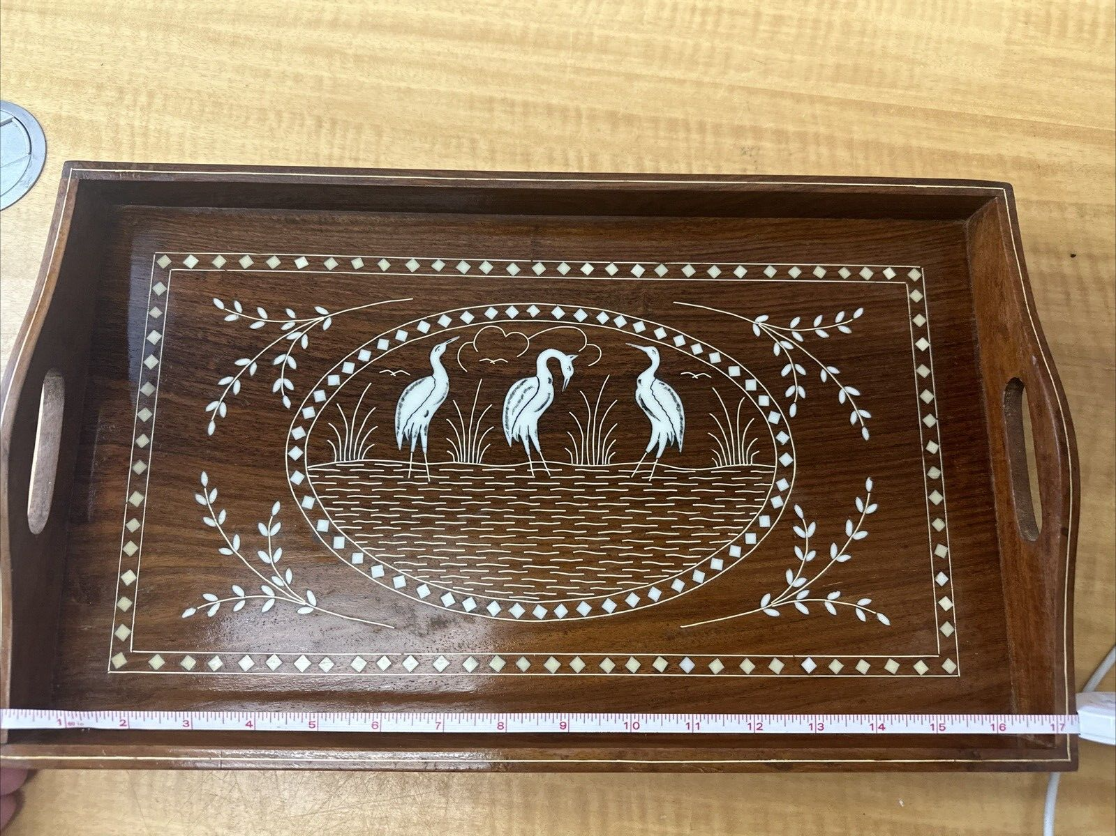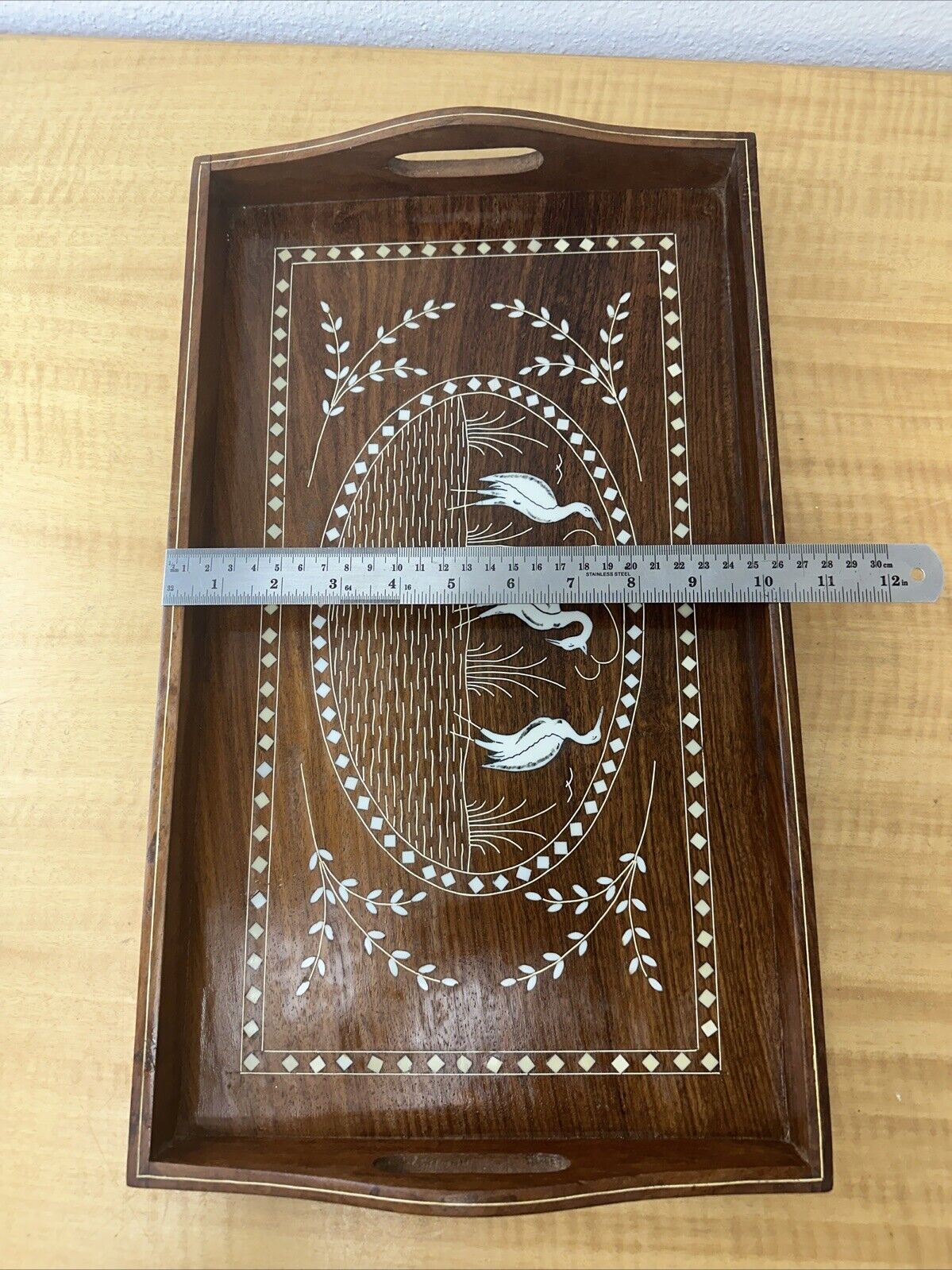 Inlaid Handmade Wooden Service Tray With Handles – Indian