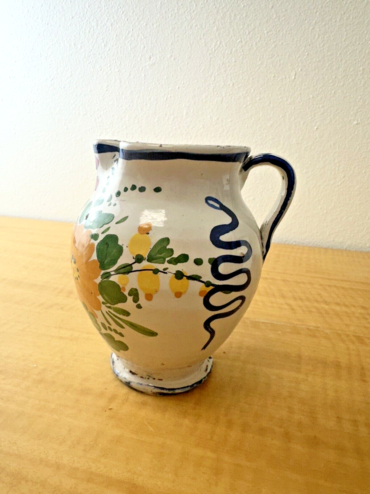 Italian Floral Vase – Vintage Folk Art Hand Painted Flower Pottery Pitcher