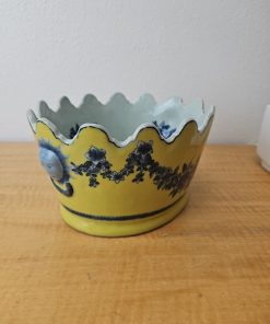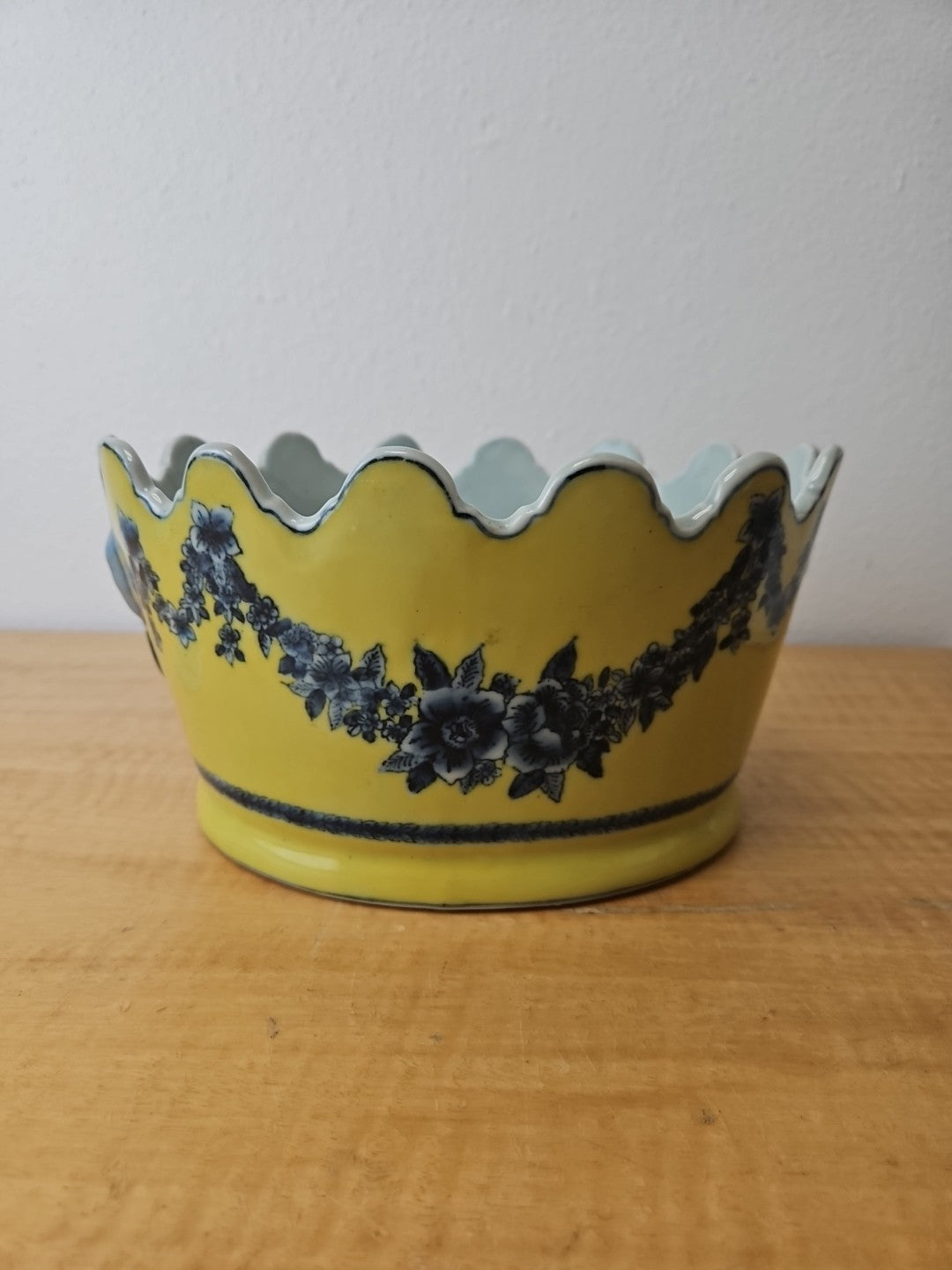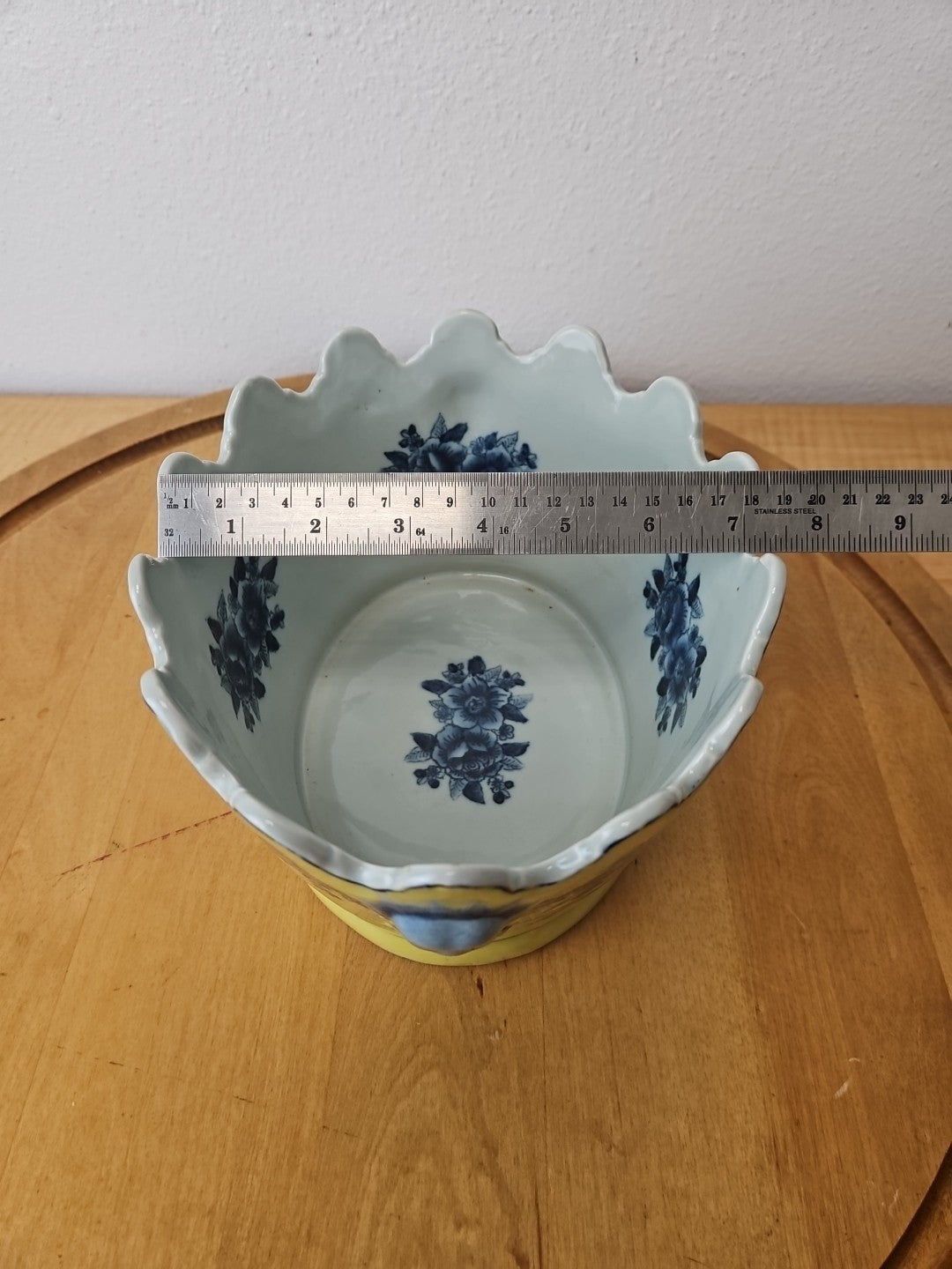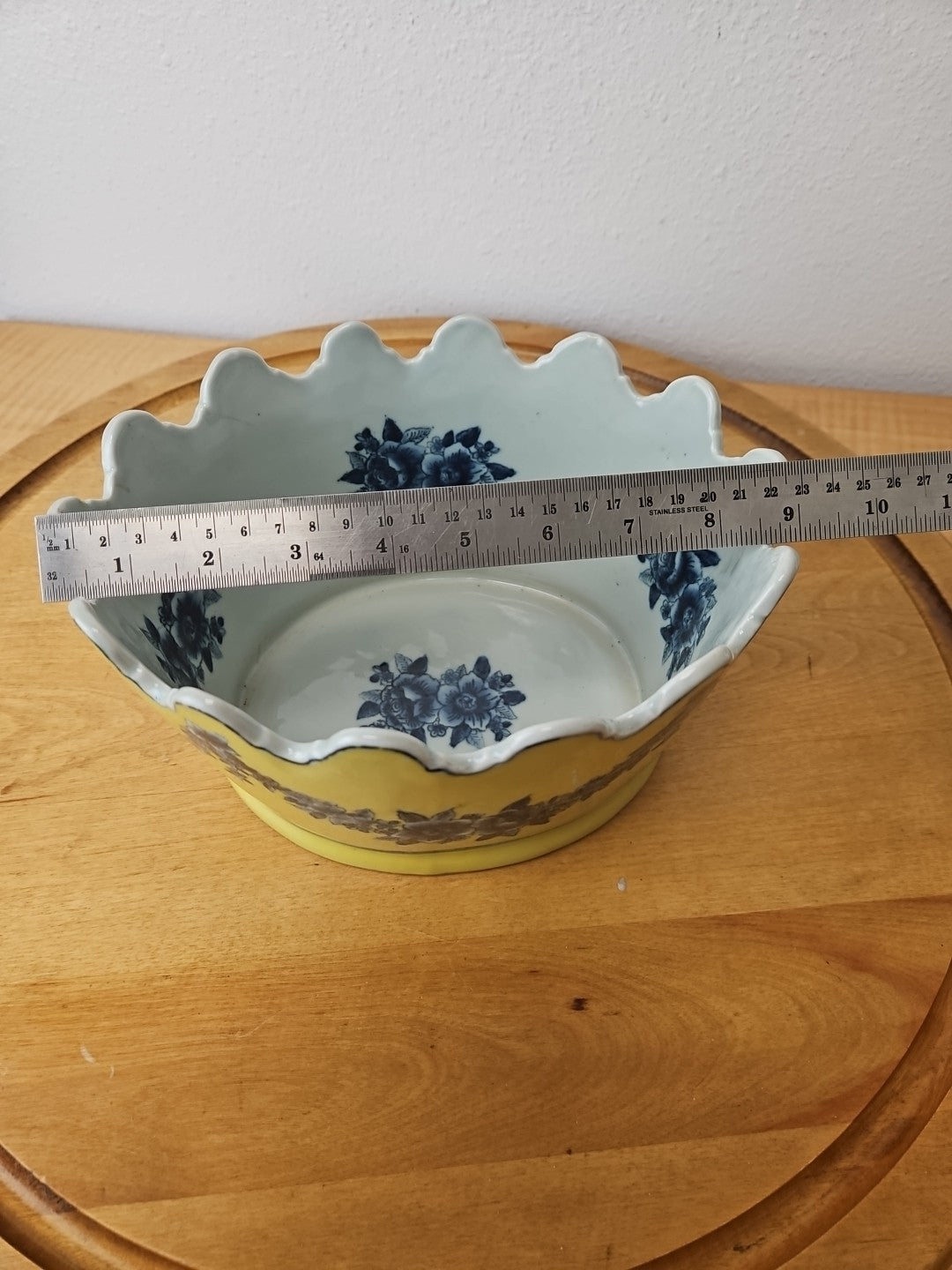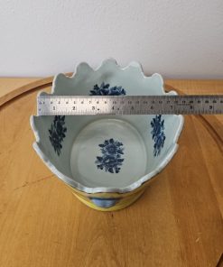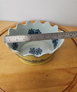 JUWC Porcelain Yellow/Blue Floral Scalloped Bowl 2 faces, hand painted
