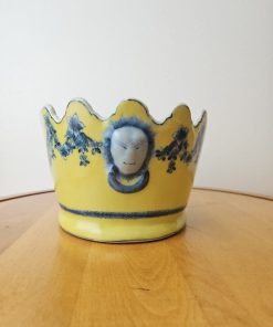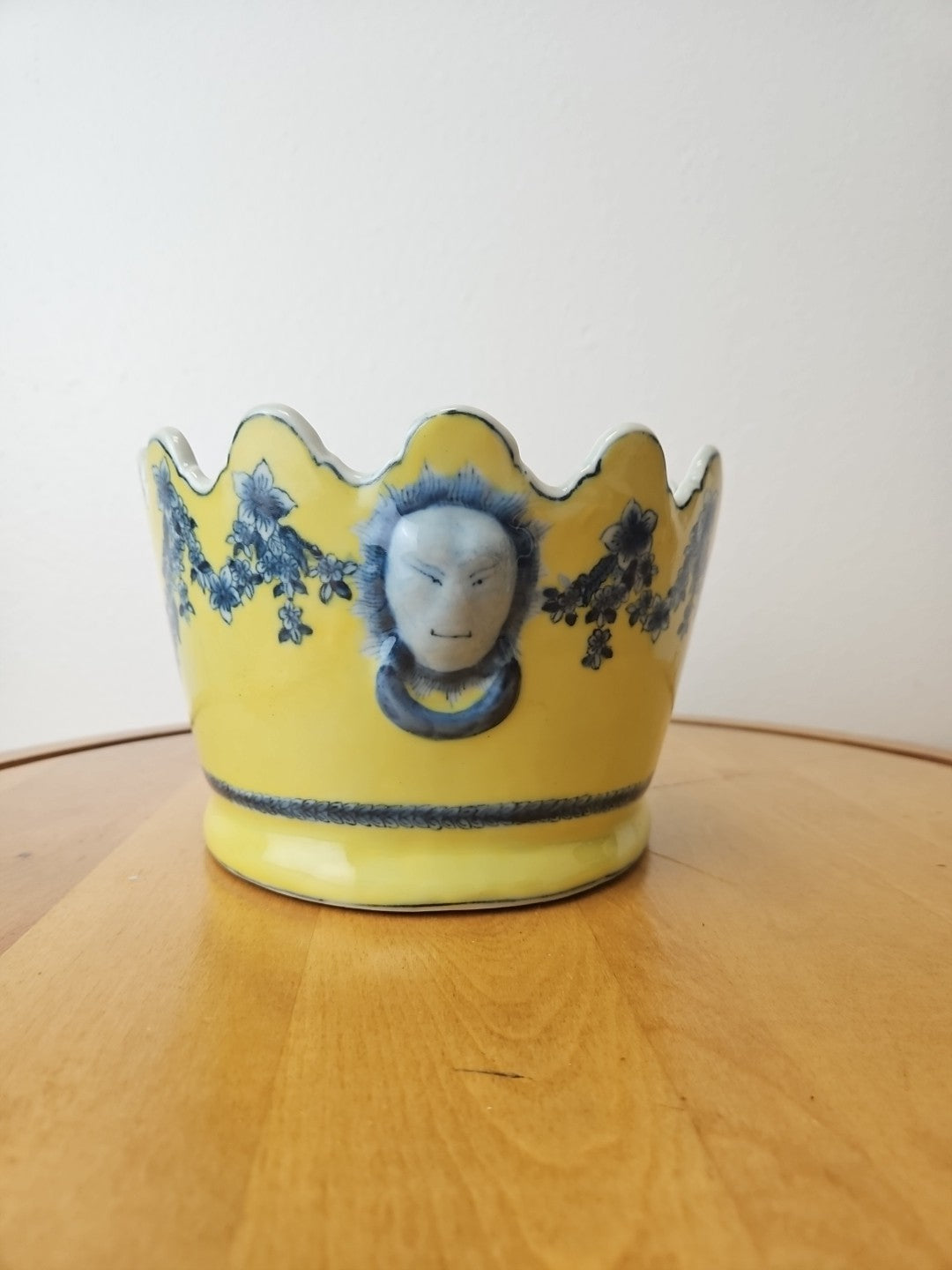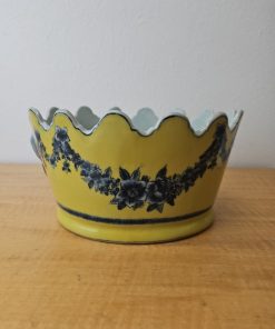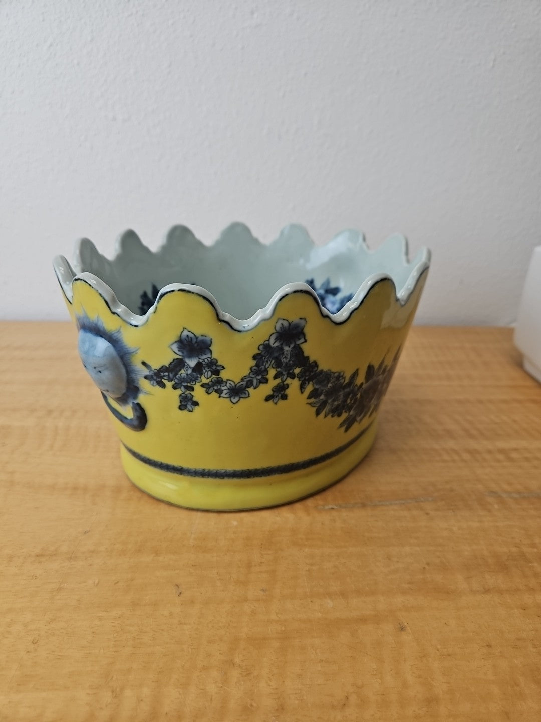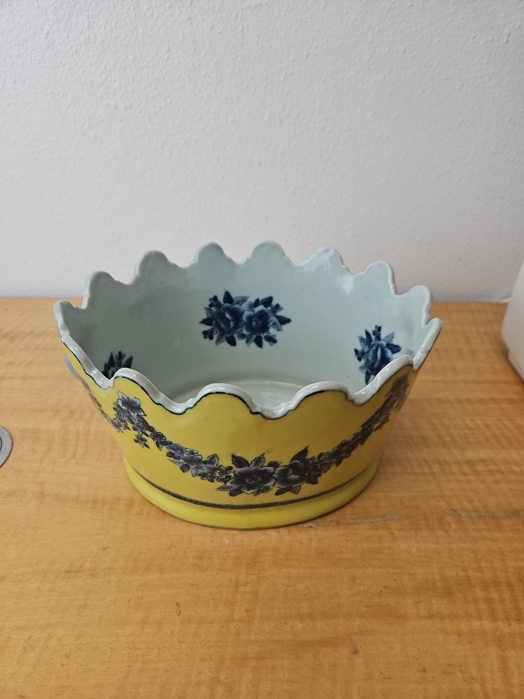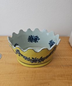 JUWC Porcelain Yellow/Blue Floral Scalloped Bowl 2 faces, hand painted