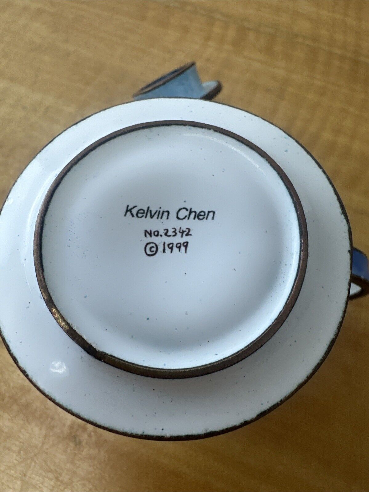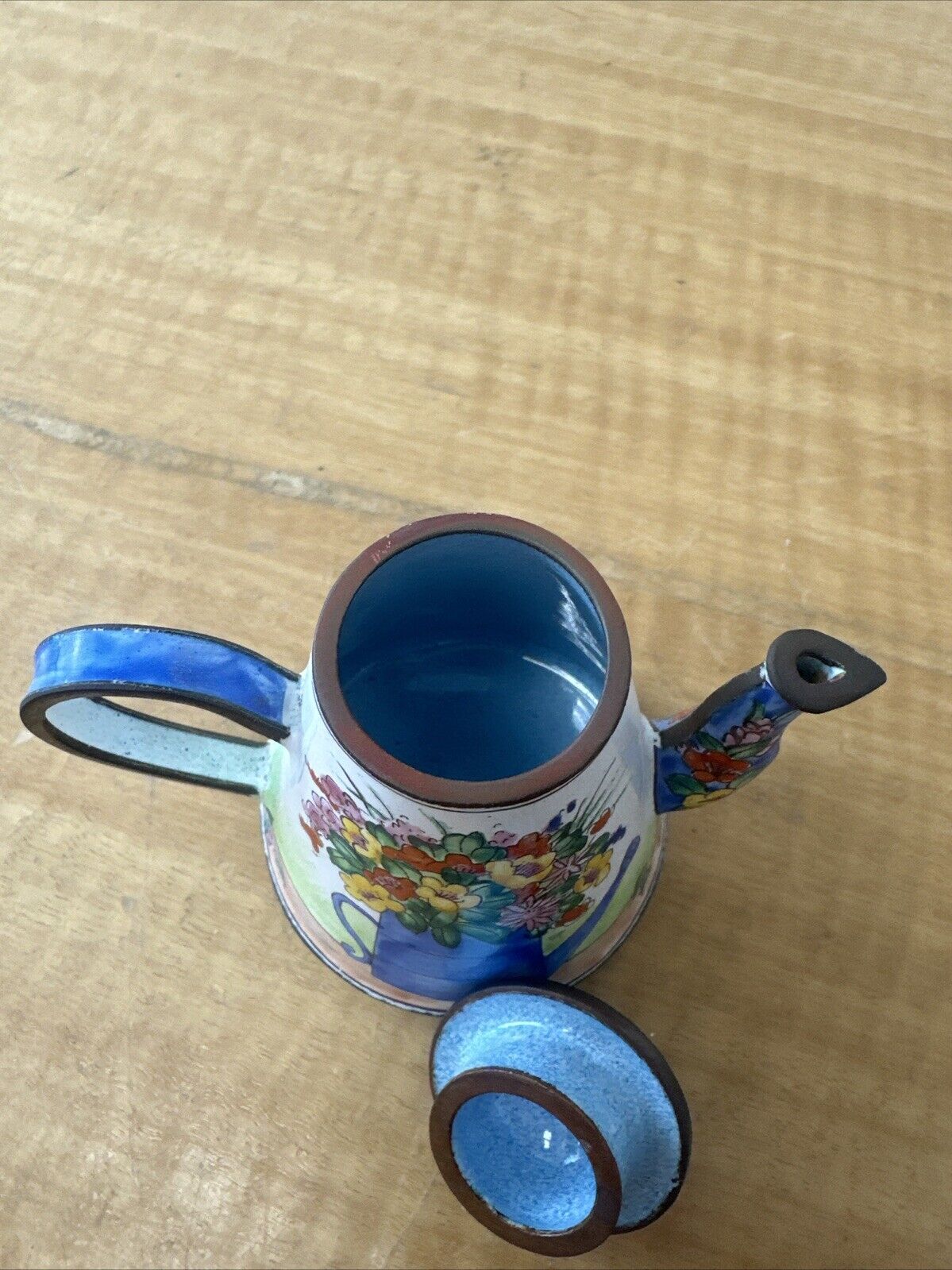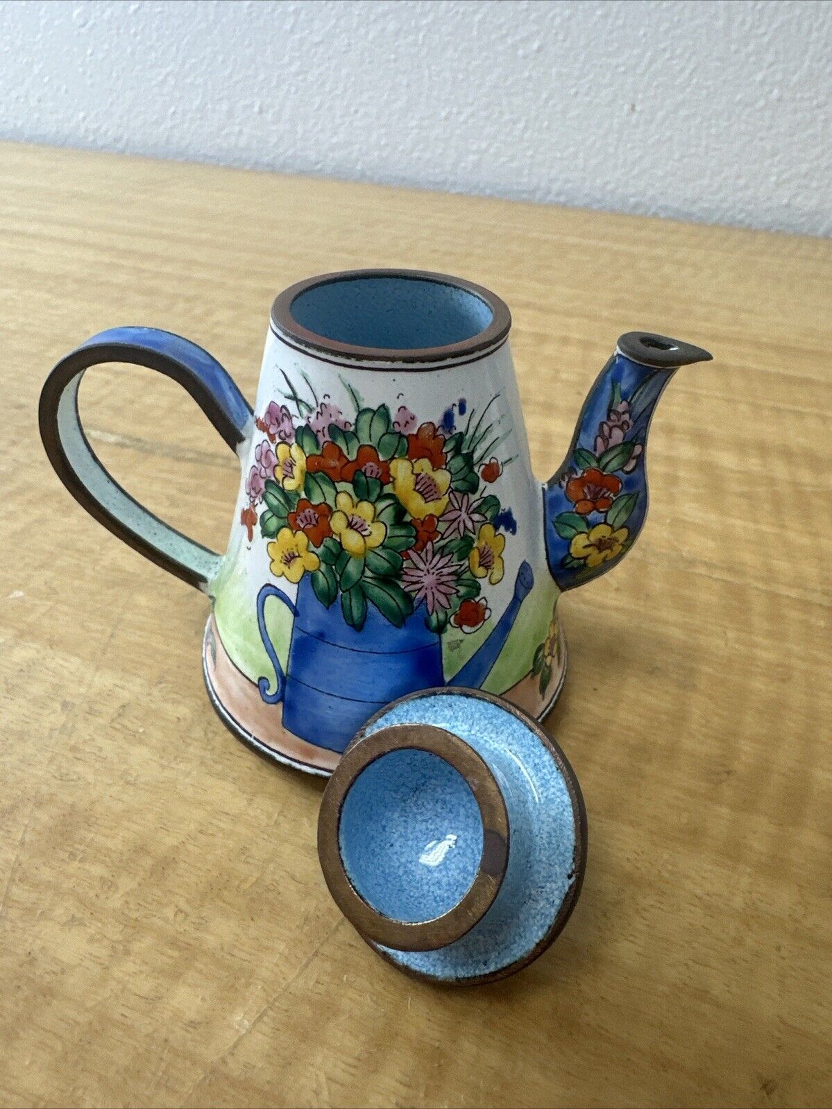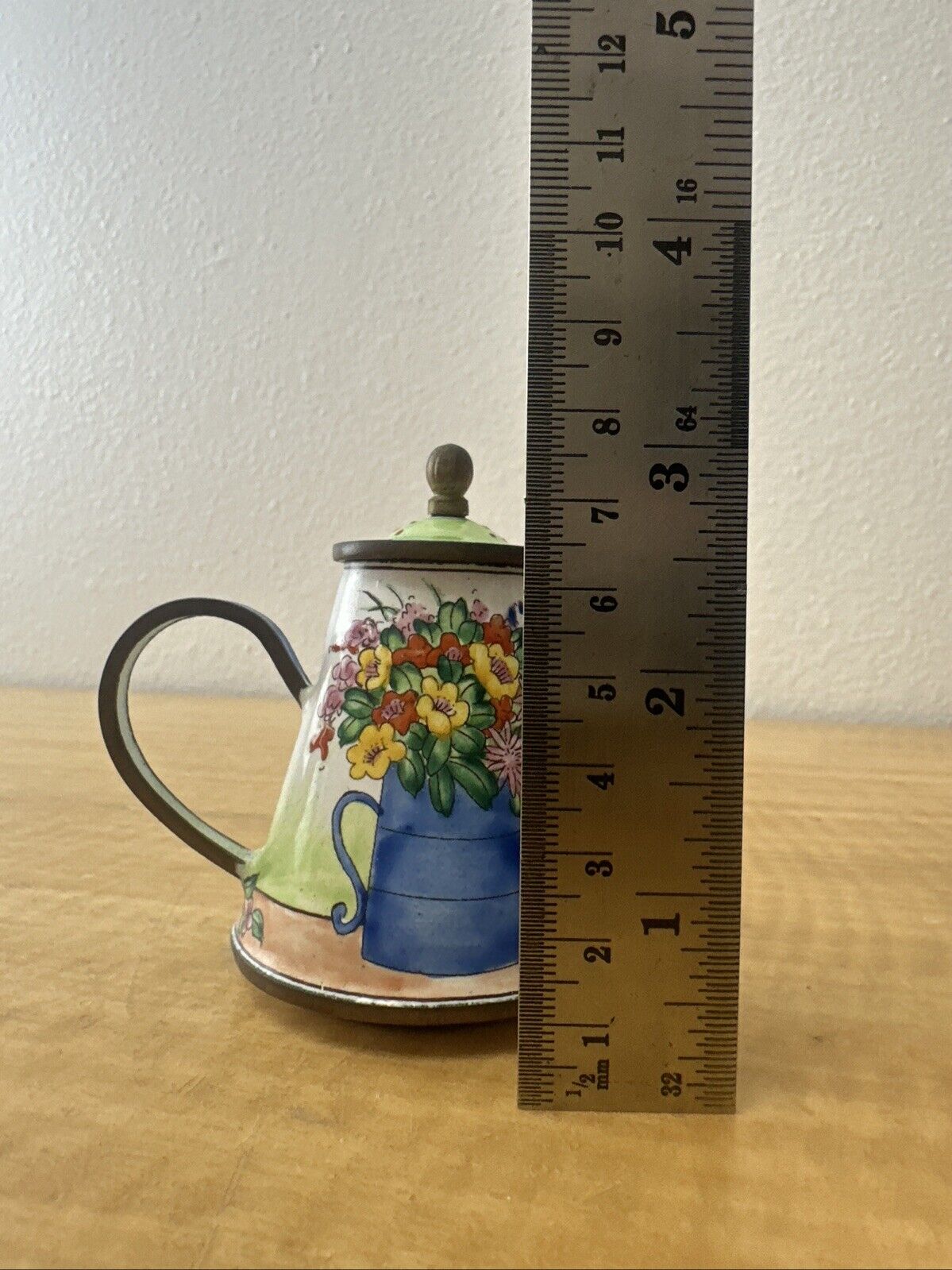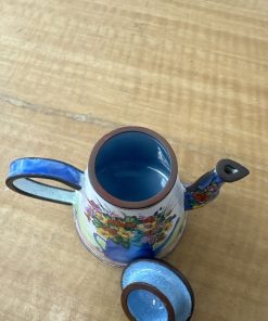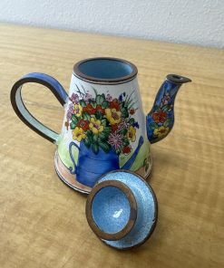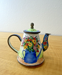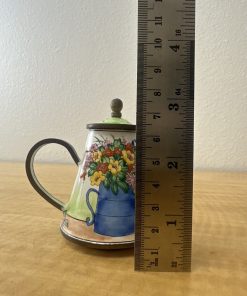 KELVIN CHEN MINIATURE ENAMEL TEAPOT RARE WATERING CAN BOUQUET FLOWER # 1275 1999