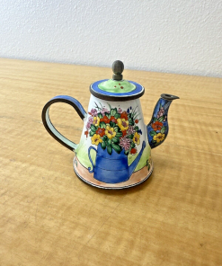 KELVIN CHEN MINIATURE ENAMEL TEAPOT RARE WATERING CAN BOUQUET FLOWER # 1275 1999