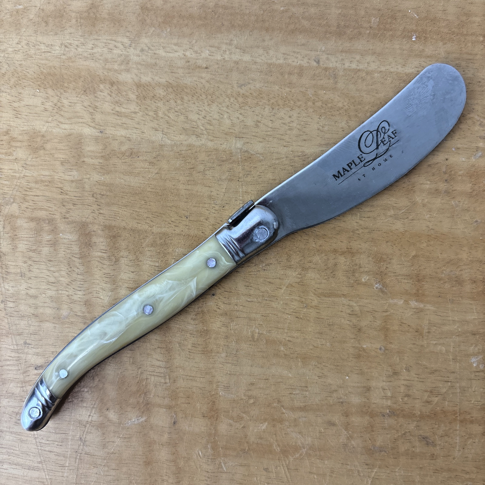 Laguiole Beige Cream Egg White Stainless Jean Dubost Butter Spreader Maple Leaf