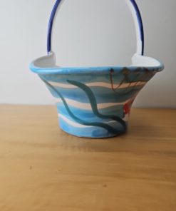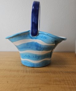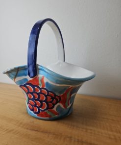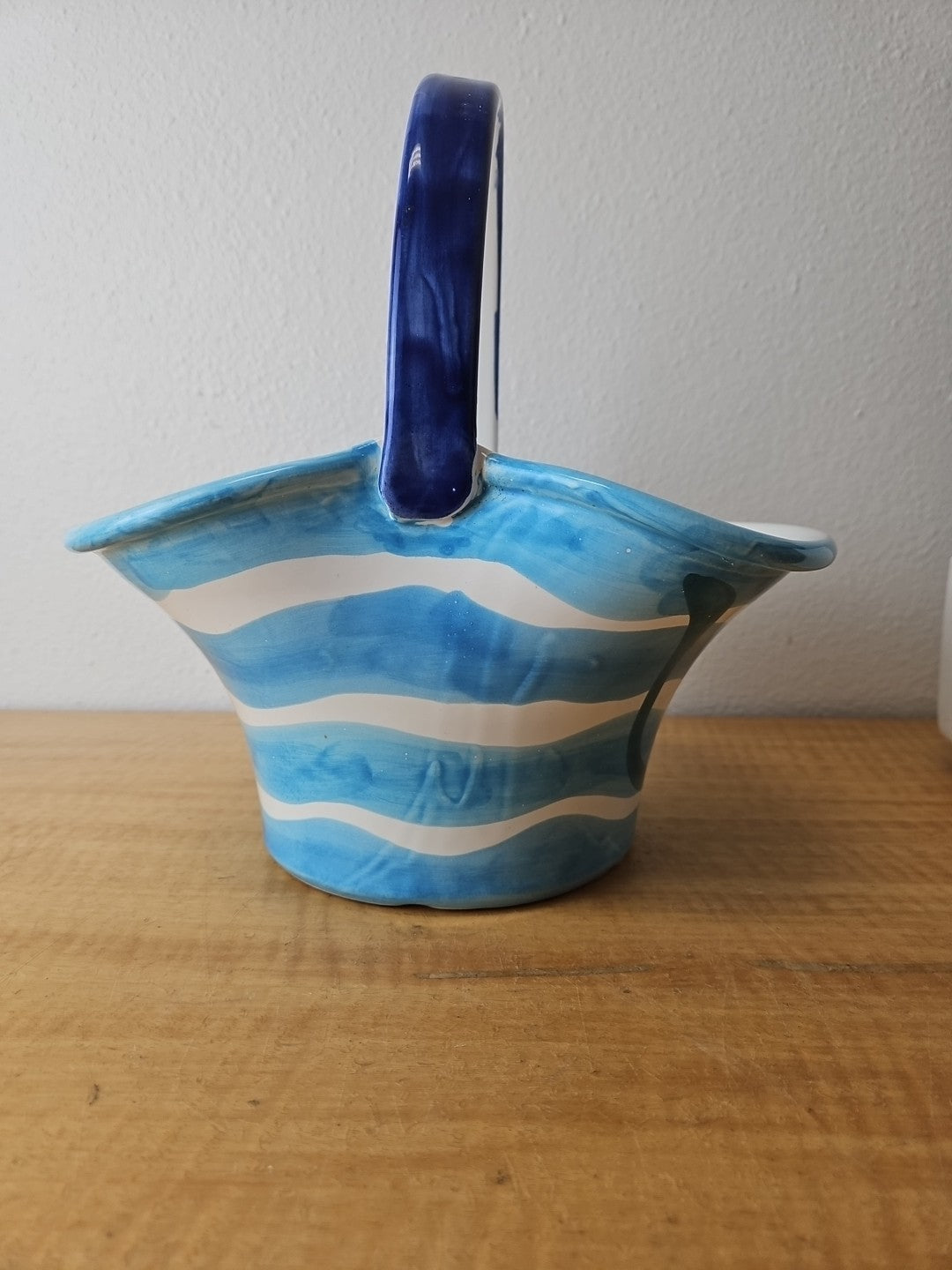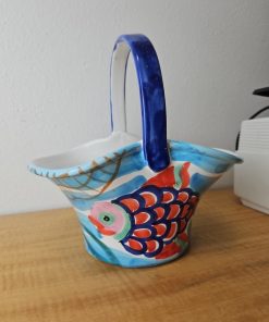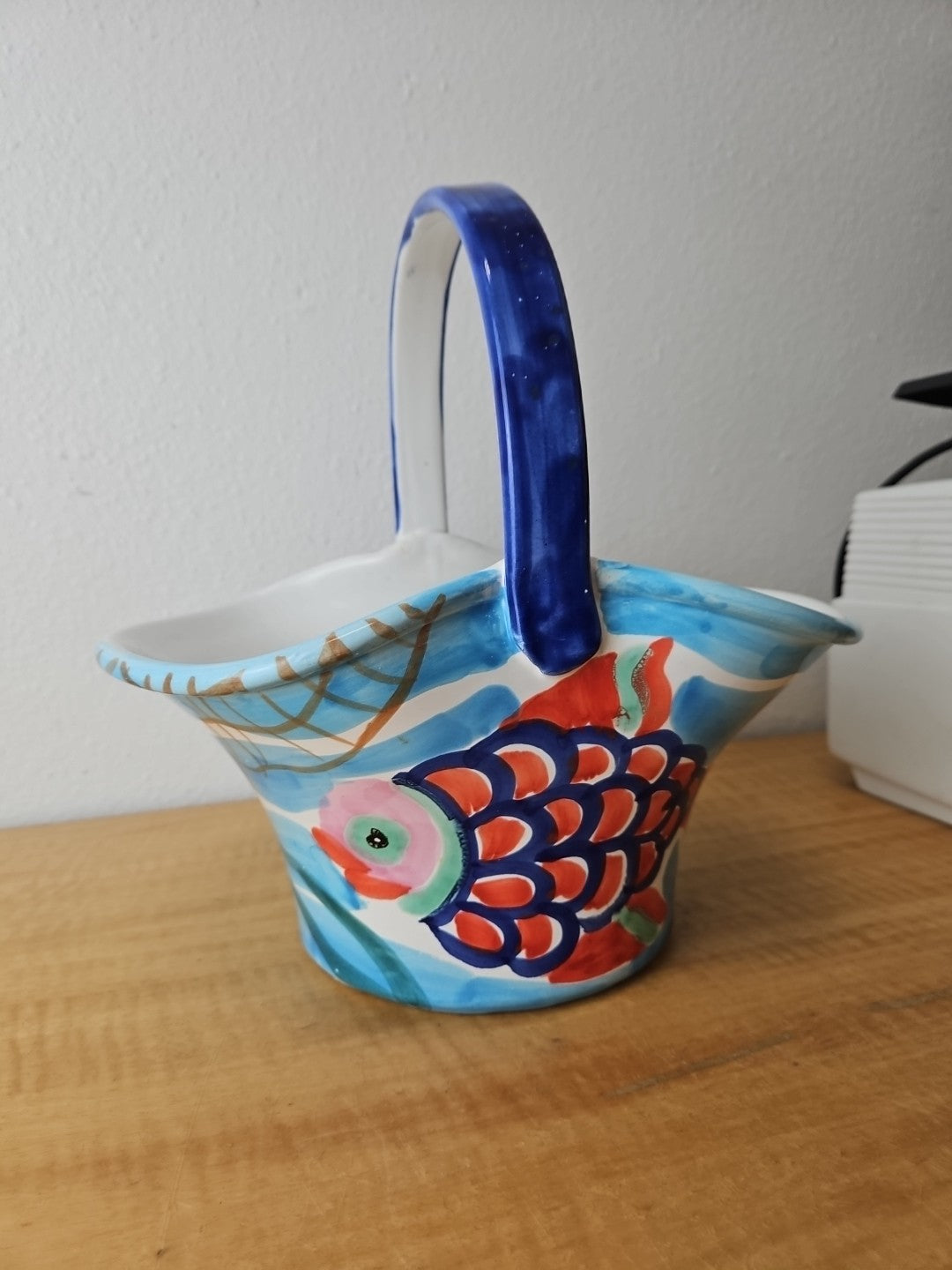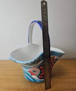 Large Ceramic hand painted Flower Basket w/ Handle Made in Italy 10 3/4″h