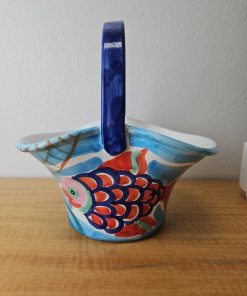 Large Ceramic hand painted Flower Basket w/ Handle Made in Italy 10 3/4″h