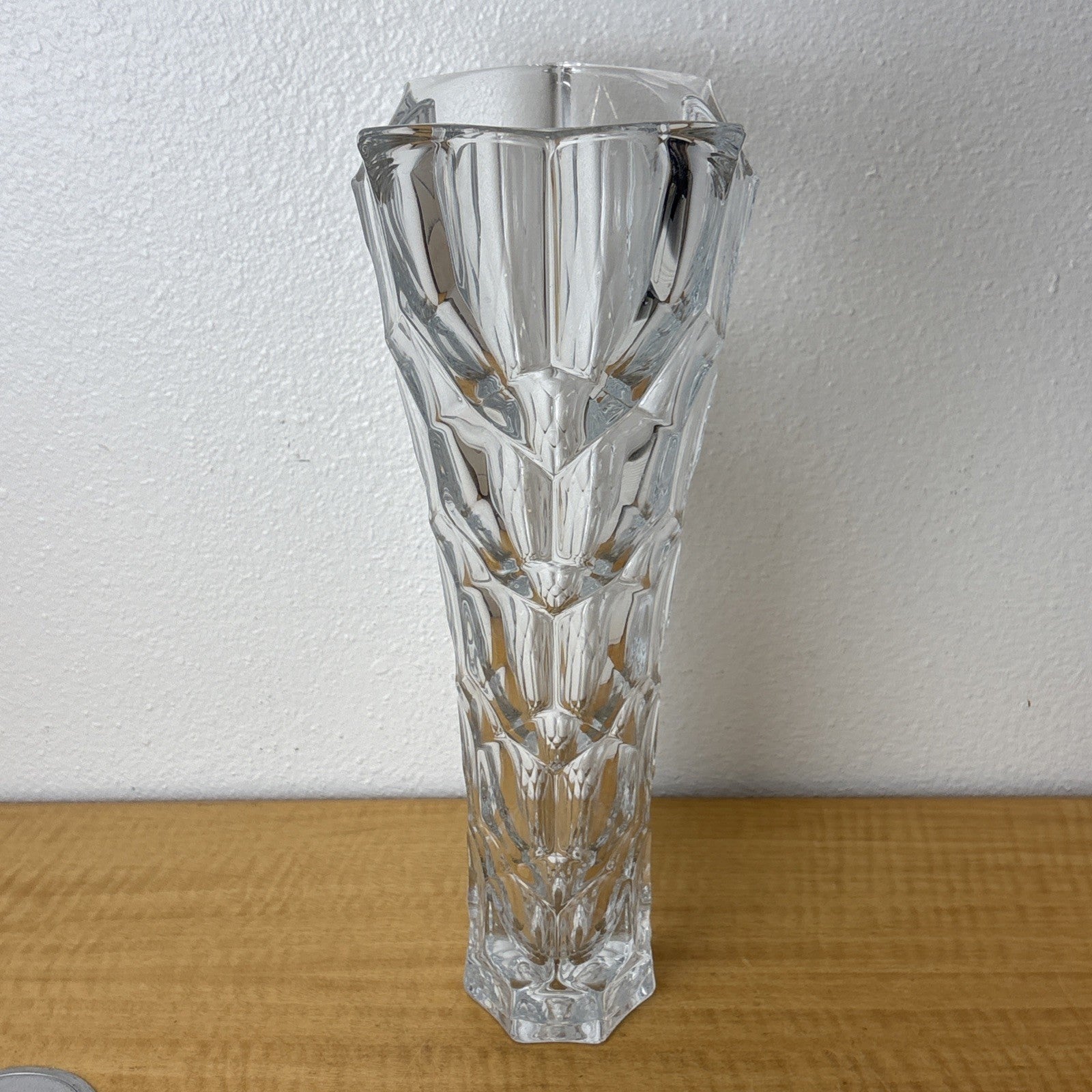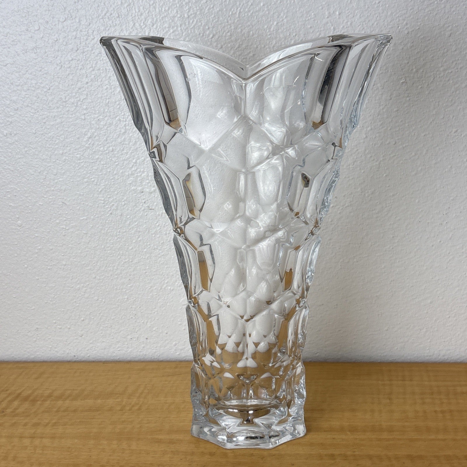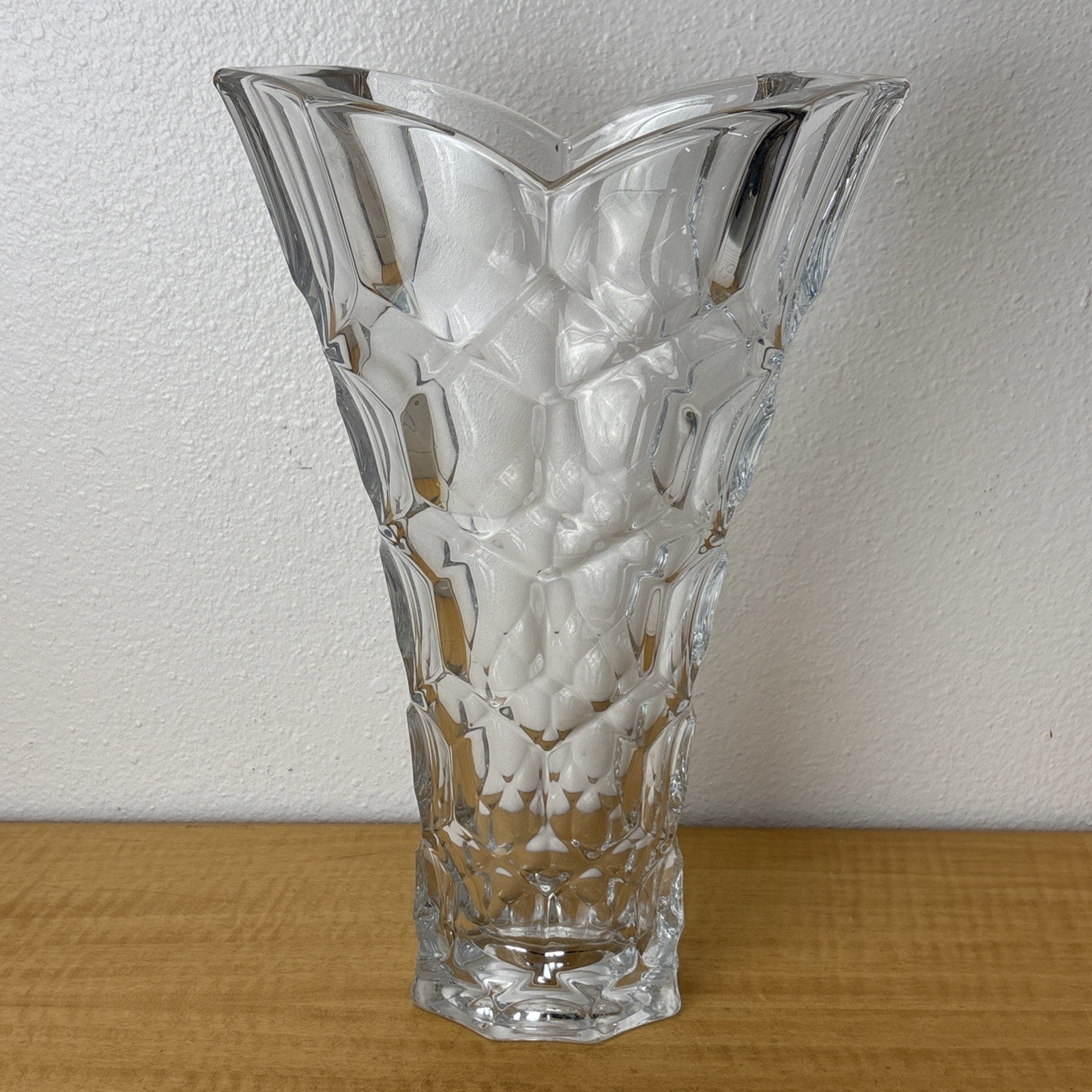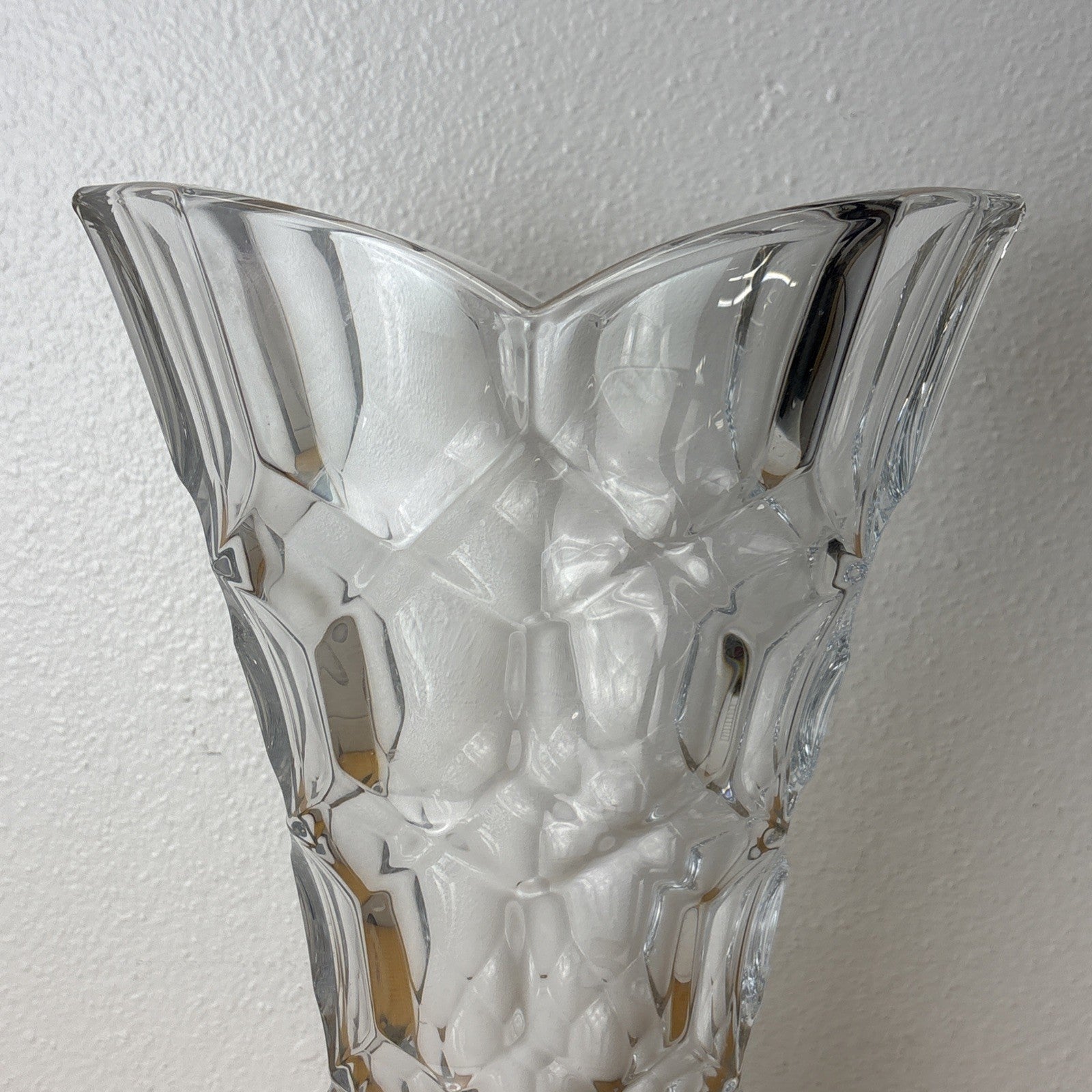 Large Heavy Shannon Clear Lead Crystal Vase Honeycomb