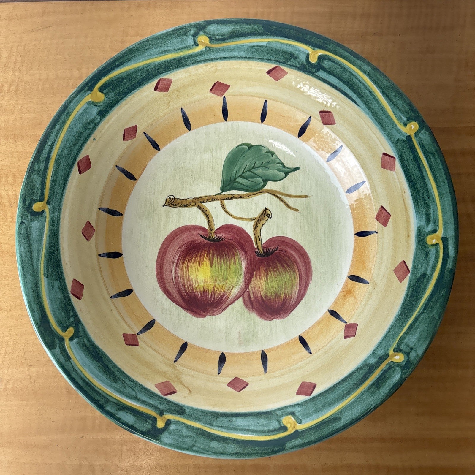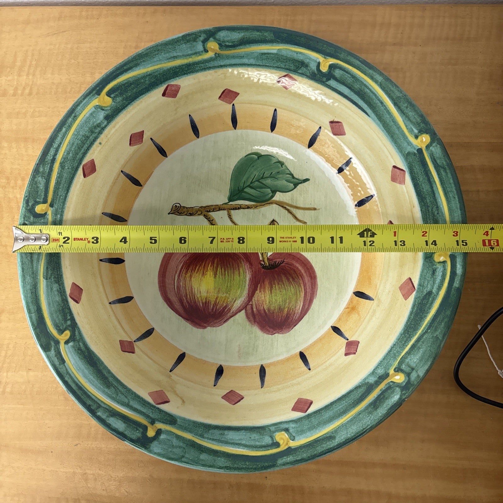 Large Vintage Hand Painted 1995 Vietri Centerpiece Ceramic Bowl w/ Apples
