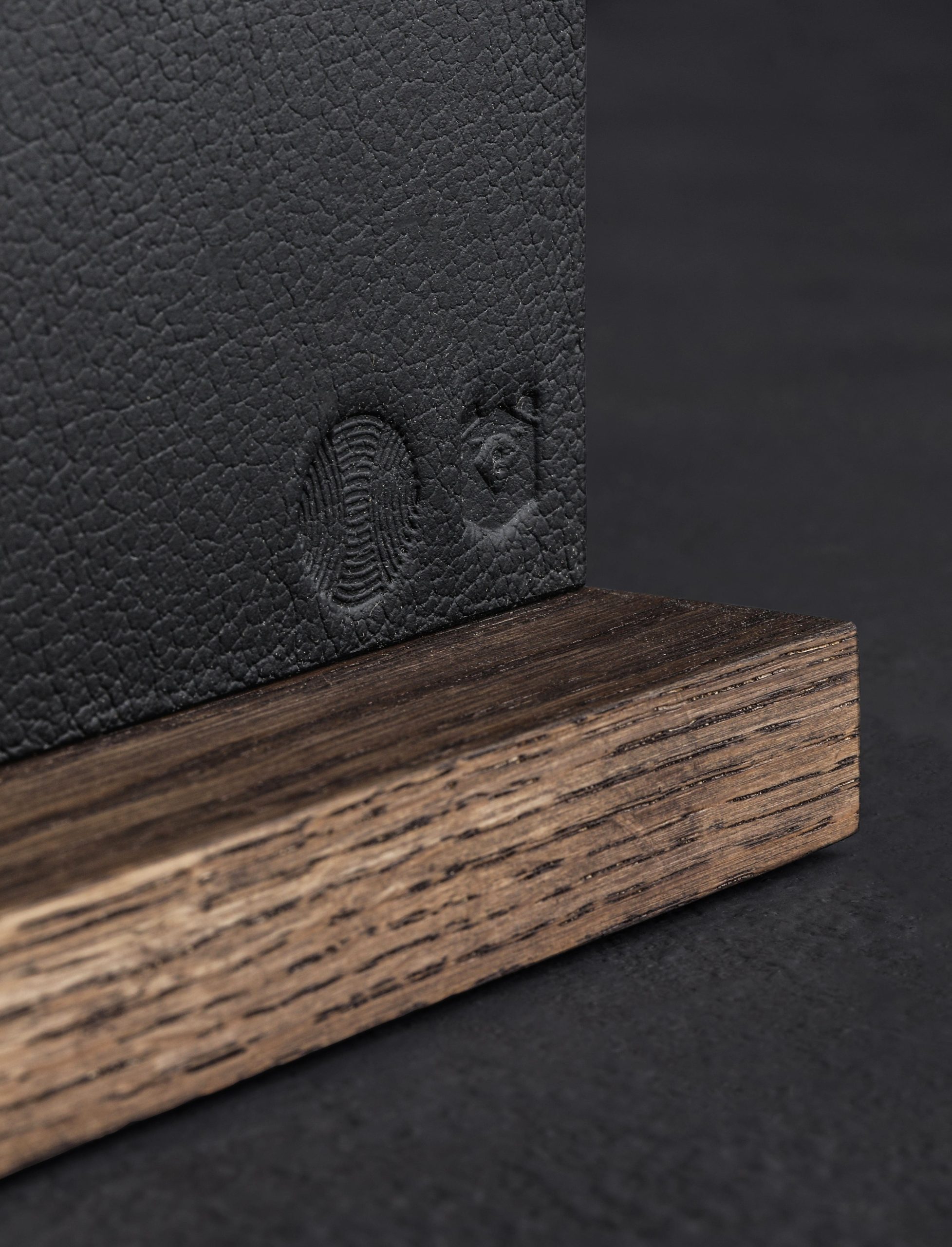 Display your favorite blades like the works of art that they are. Created in collaboration with Swedish designer Mikael Gröndahl of Piotr the Bear exclusively for Living Steel, this double-sided countertop knife block sets rare-earth magnets into a European white oak base to sleekly and safely hold up to six blades against a backdrop of soft, textured black leather. *Knives not included.