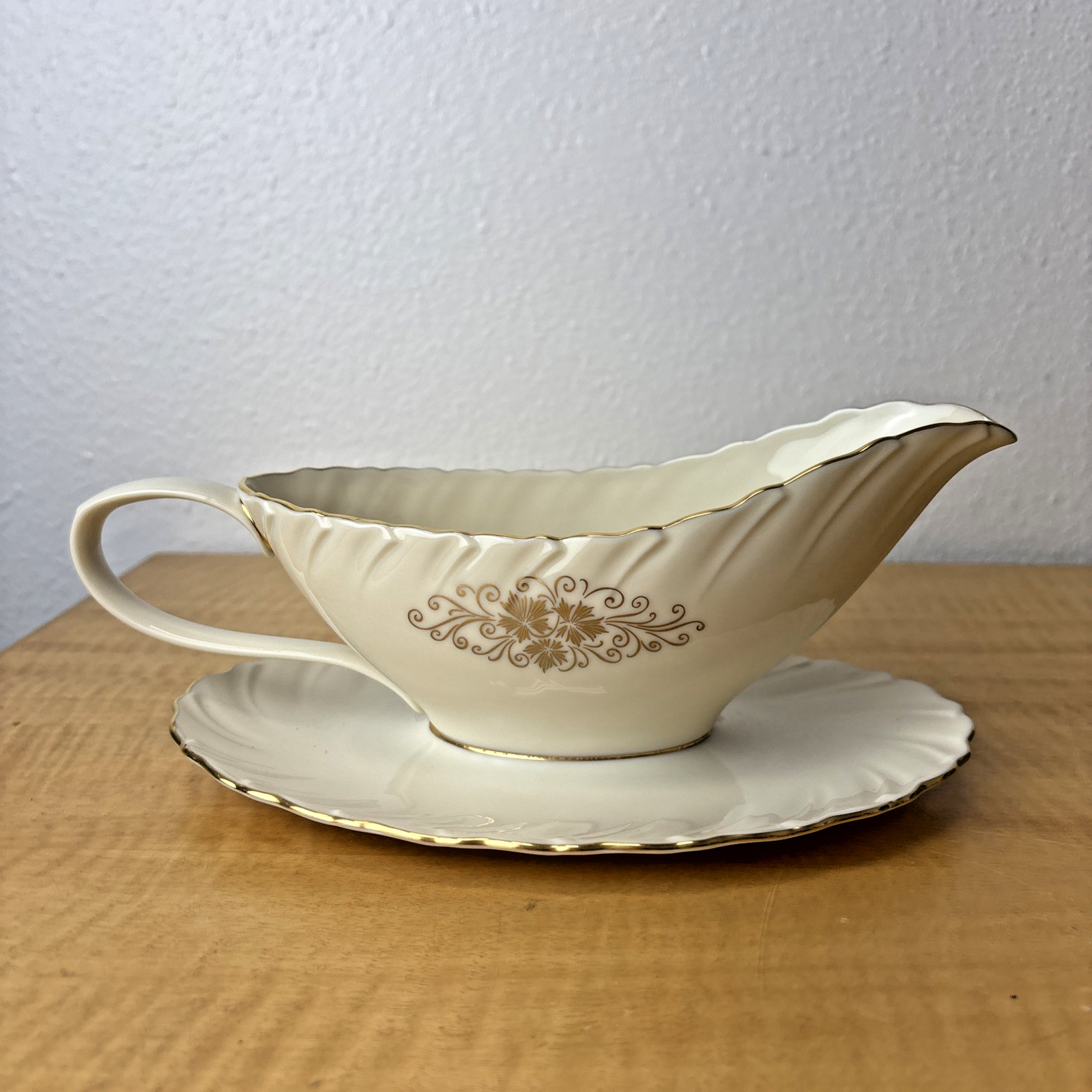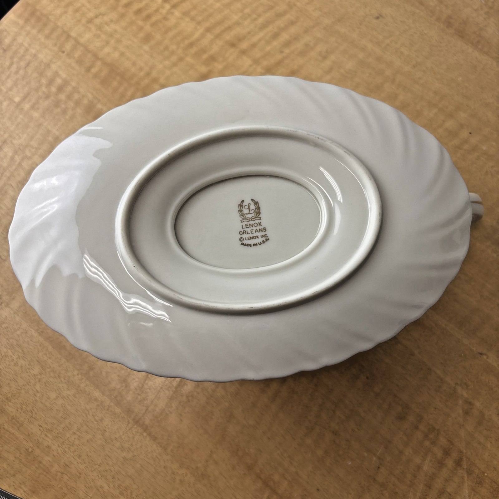 Lenox “Orleans” Pattern Gravy Boat w/ Attached Under Plate Scalloped Edges Gold