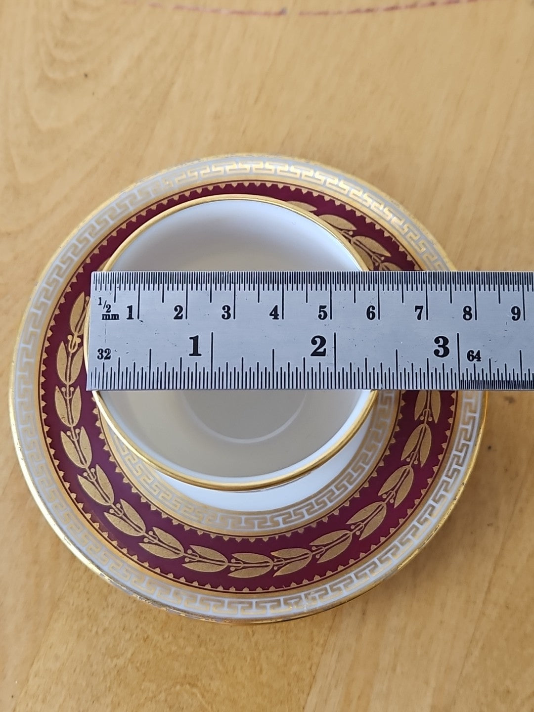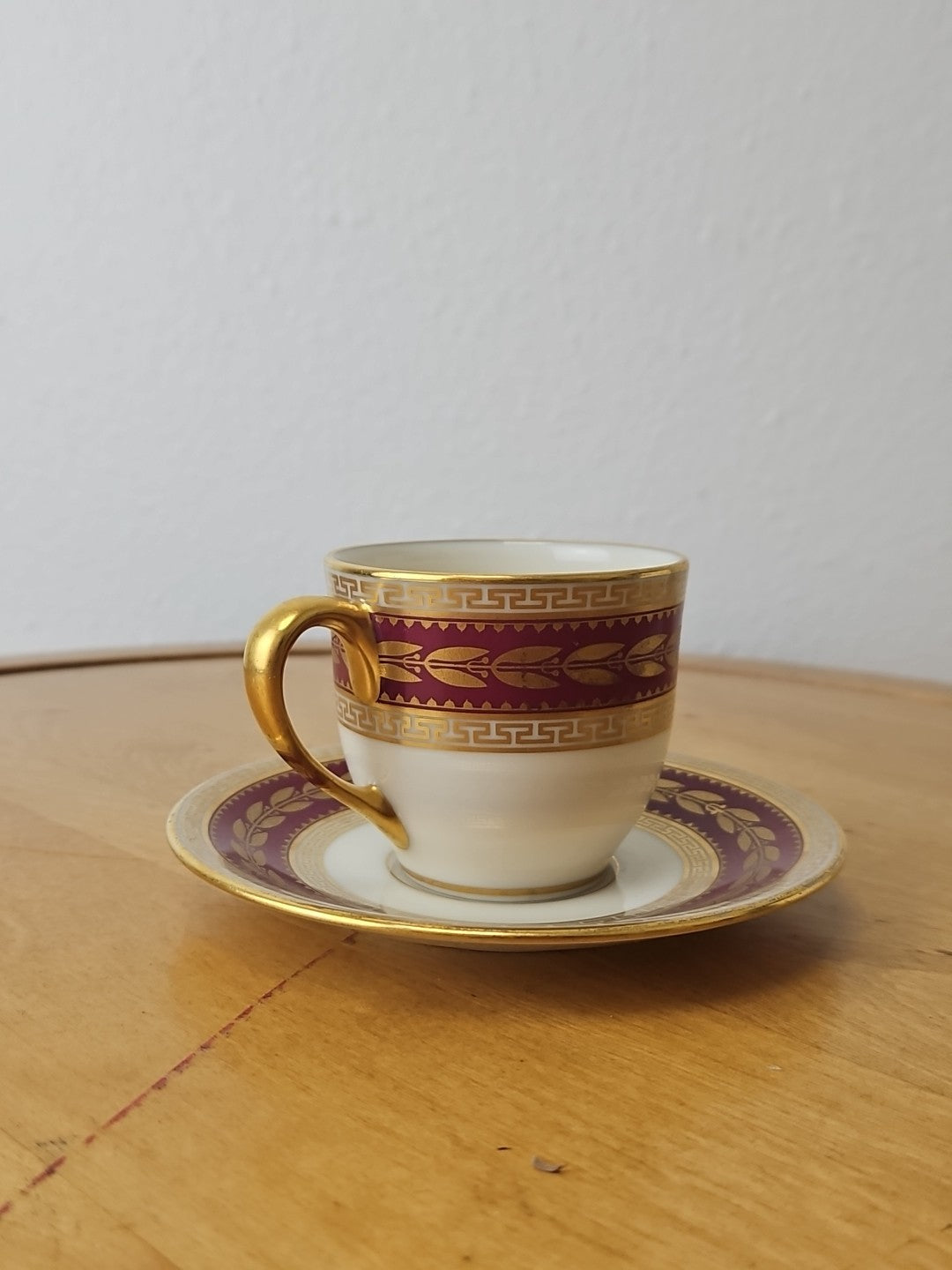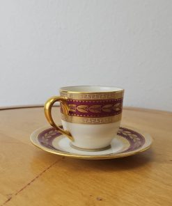 Lenox USA Demitasse Coffee Cup & Saucer set S &G Gump Gold Laurel Maroon