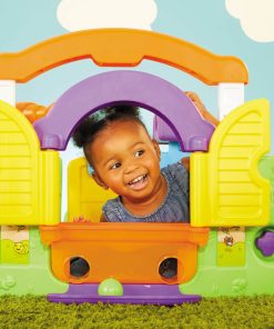 For more fun games, use the window planter for ball drop play. The mailbox allows children to pretend to receive ‘mail’ as well as learn shapes and colors. The Tap-a-Tune Piano has colored chimes and buttons to encourage your child to experiment musically.