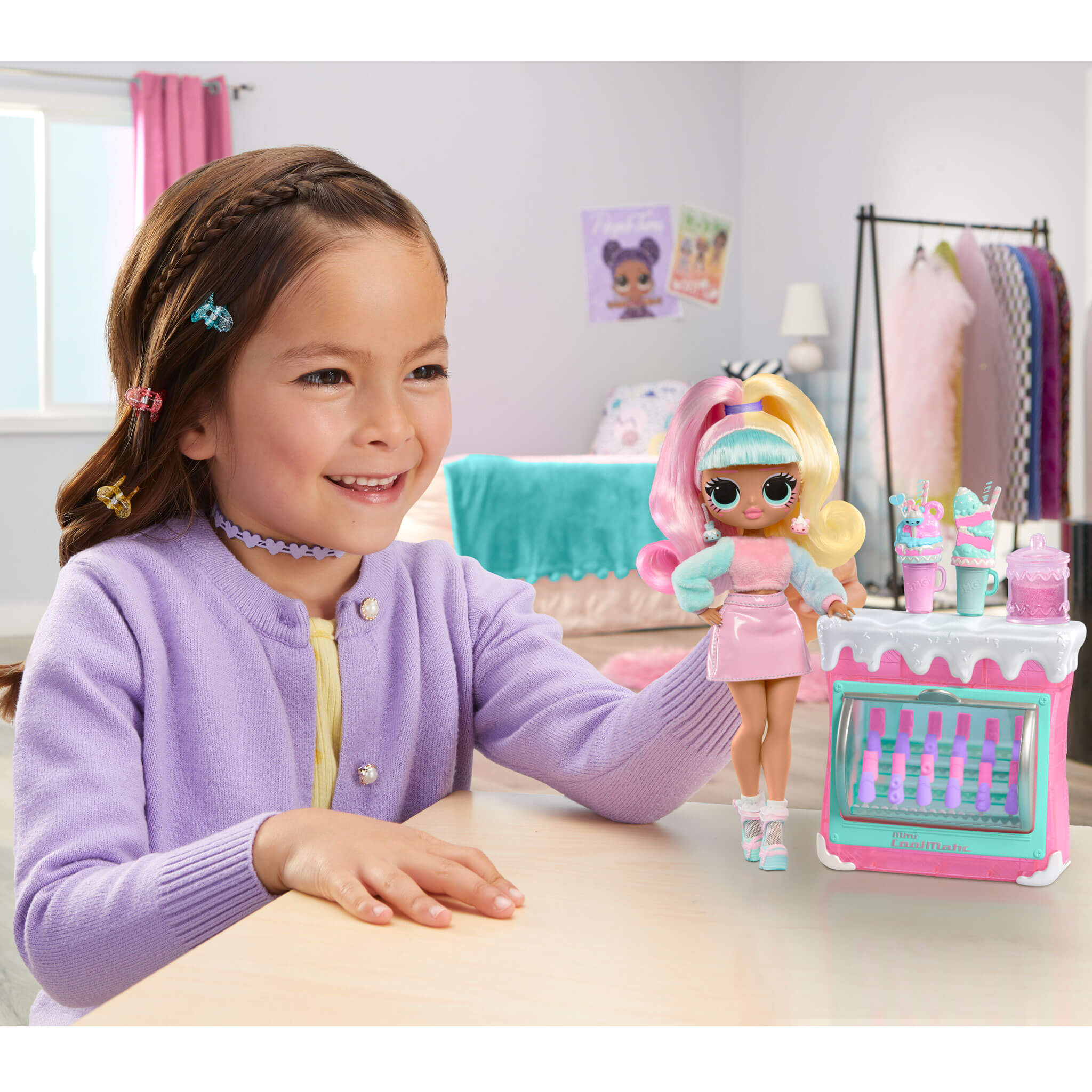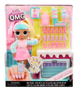 Discover the sweetest surprises with LOL Surprise OMG Sweet Nails – Candylicious Sprinkles Shop including an ice cream pop freezer, unique nail accessories, and fan-favorite character, Candylicious, styled in her signature pastel colors and gorgeous hair!
