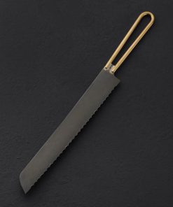 Perhaps the most unique offering from our Living Steel 626 collection, and certainly one of the most useful and utilitarian knives in the kitchen, is this striking serrated bread knife. Handmade in Gothenburg, Sweden by Andersson Copra from Swedish high carbon steel, the finely tuned, hand-sculpted serrated blade is razor sharp, perfect for the bakery owner and home bread lover alike. This elegant tool’s stand-out feature is the polished brass handle that lends comfort and control whether slicing baguette, sourdough, or the sandwich de jour.