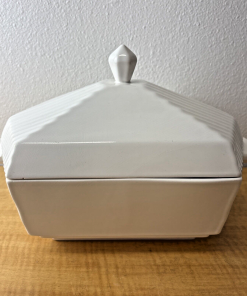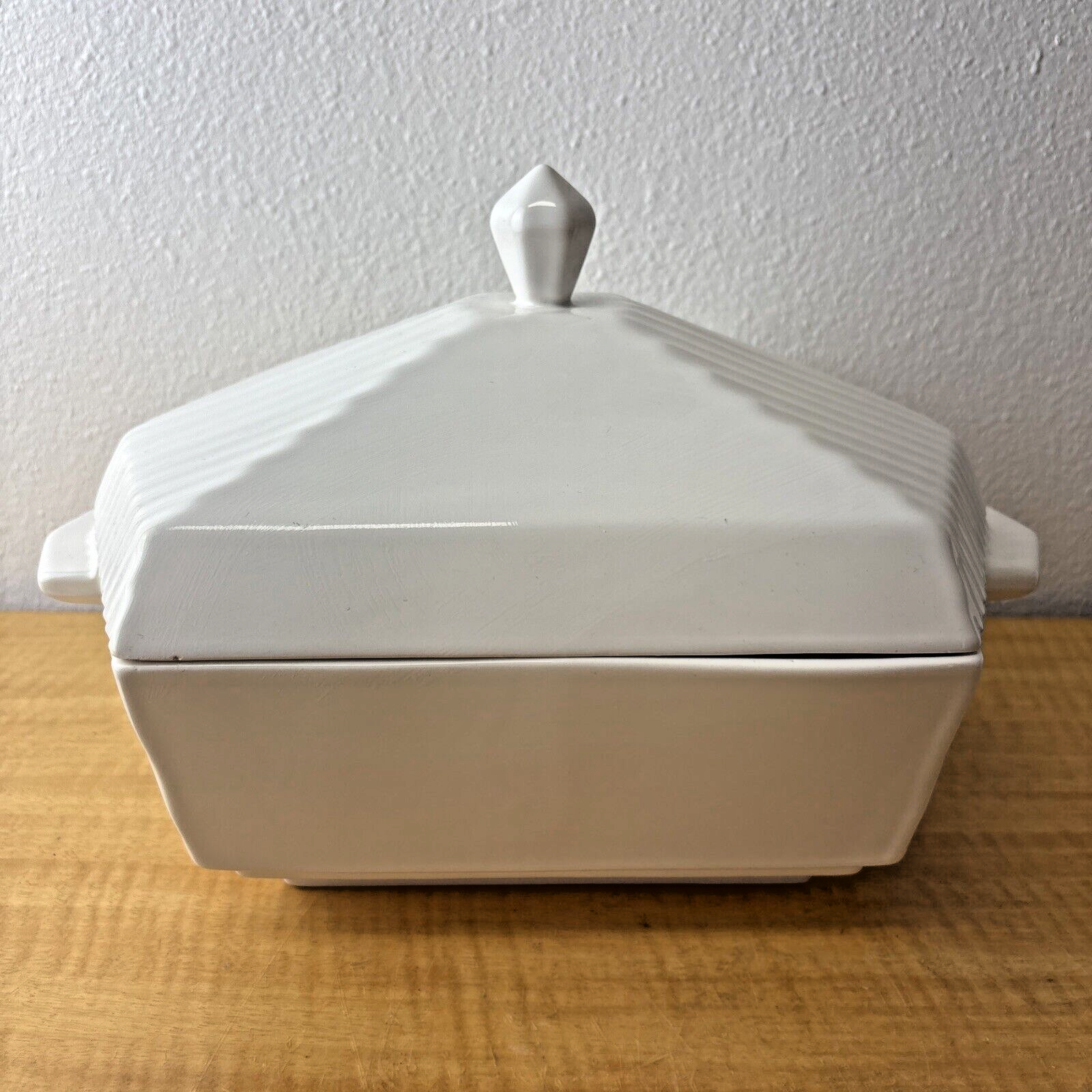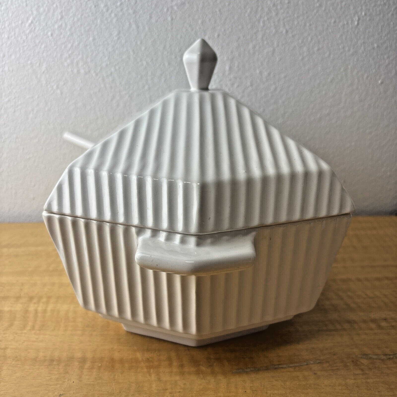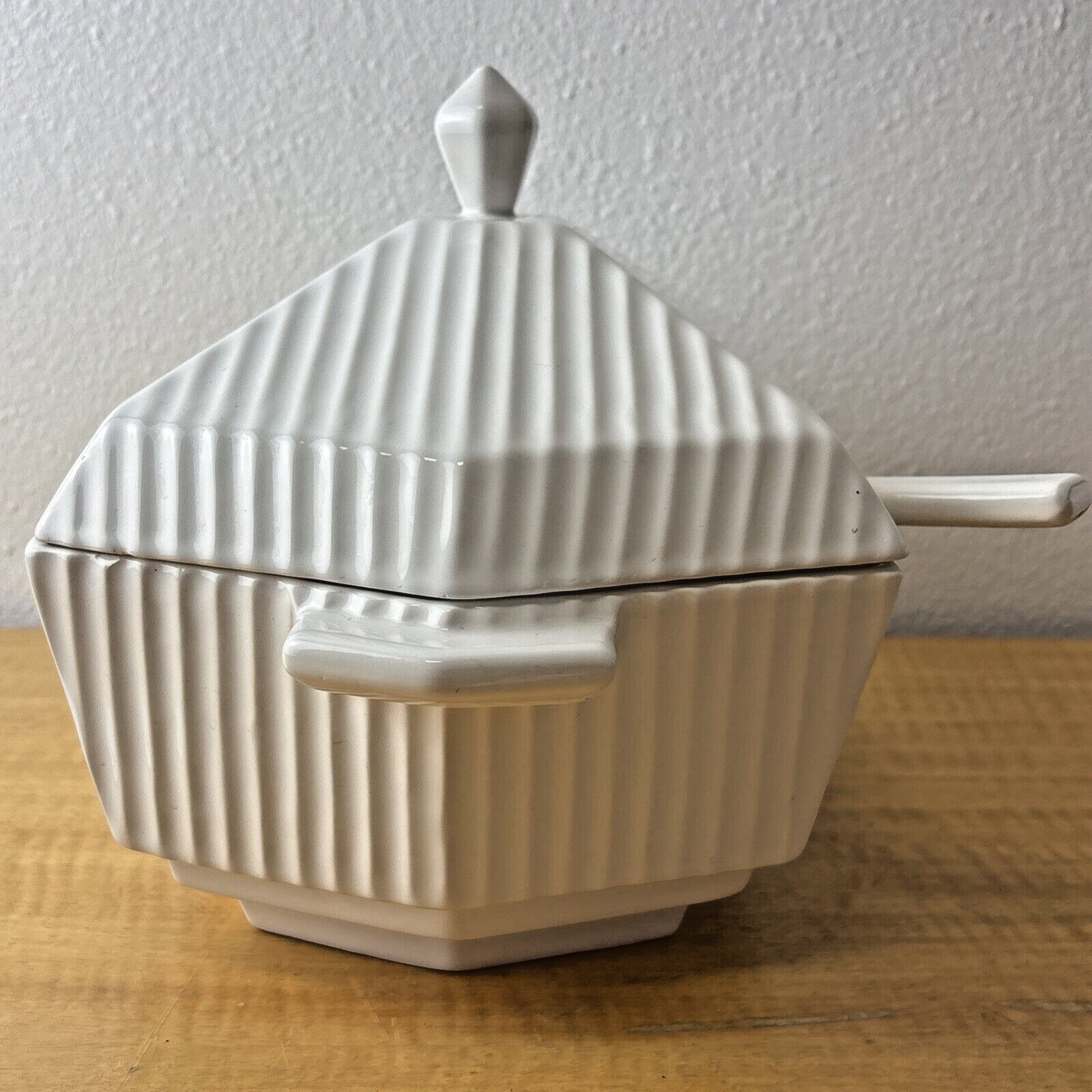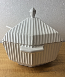 MCM Italian Soup Tureen with Ladle Off White Ceramic Juxtaposed Smooth & Lines