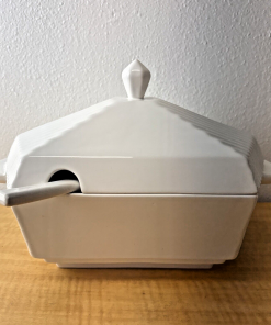 MCM Italian Soup Tureen with Ladle Off White Ceramic Juxtaposed Smooth & Lines