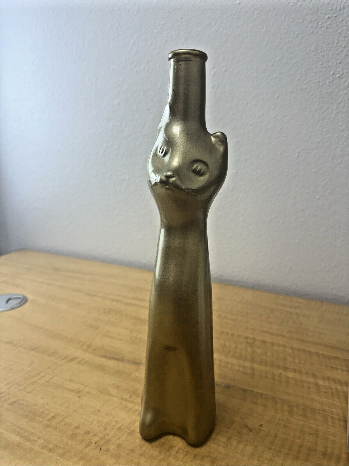 Metallic Gold Happy Cat Mosel Reisling Rheinhessen Germany Wine Bottle 13” tall.