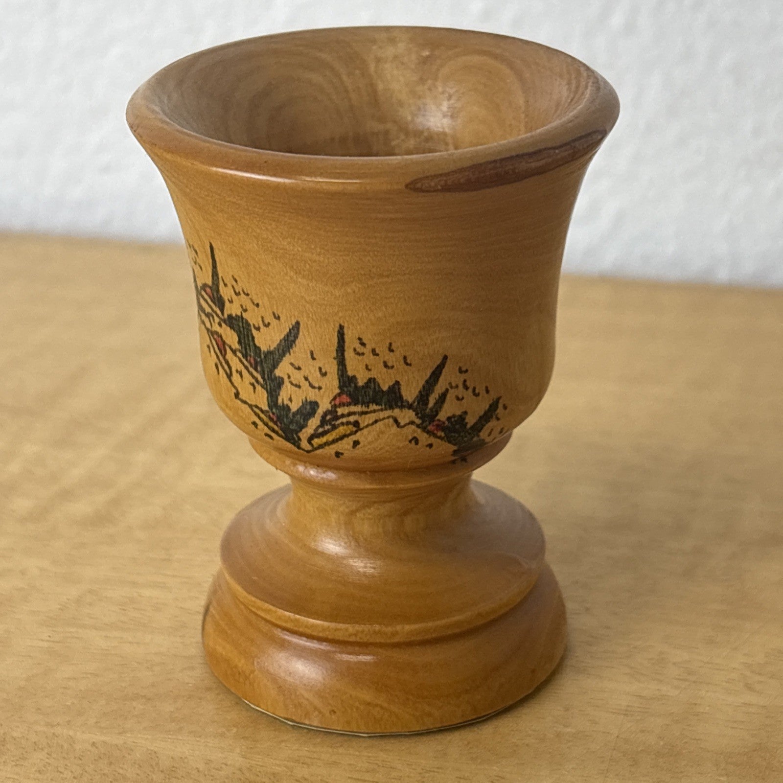 Mini / Small Wood Mortar and Pestle Set, with Design and Signed Jerasulem