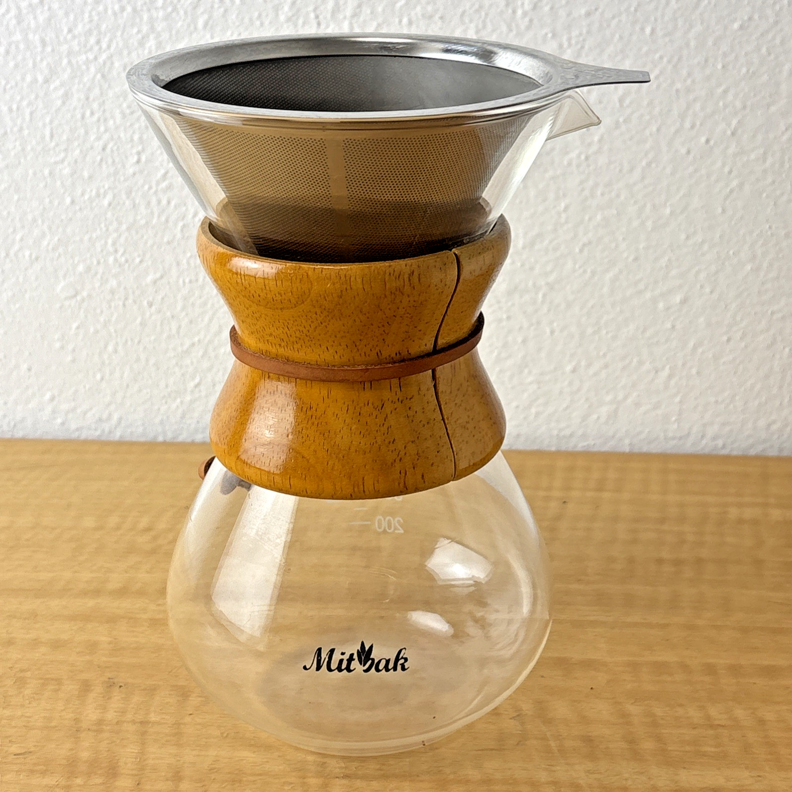 MITBAK Pour Over Coffee Maker w/ Filter | Wooden Sleeve & Rope Decoration