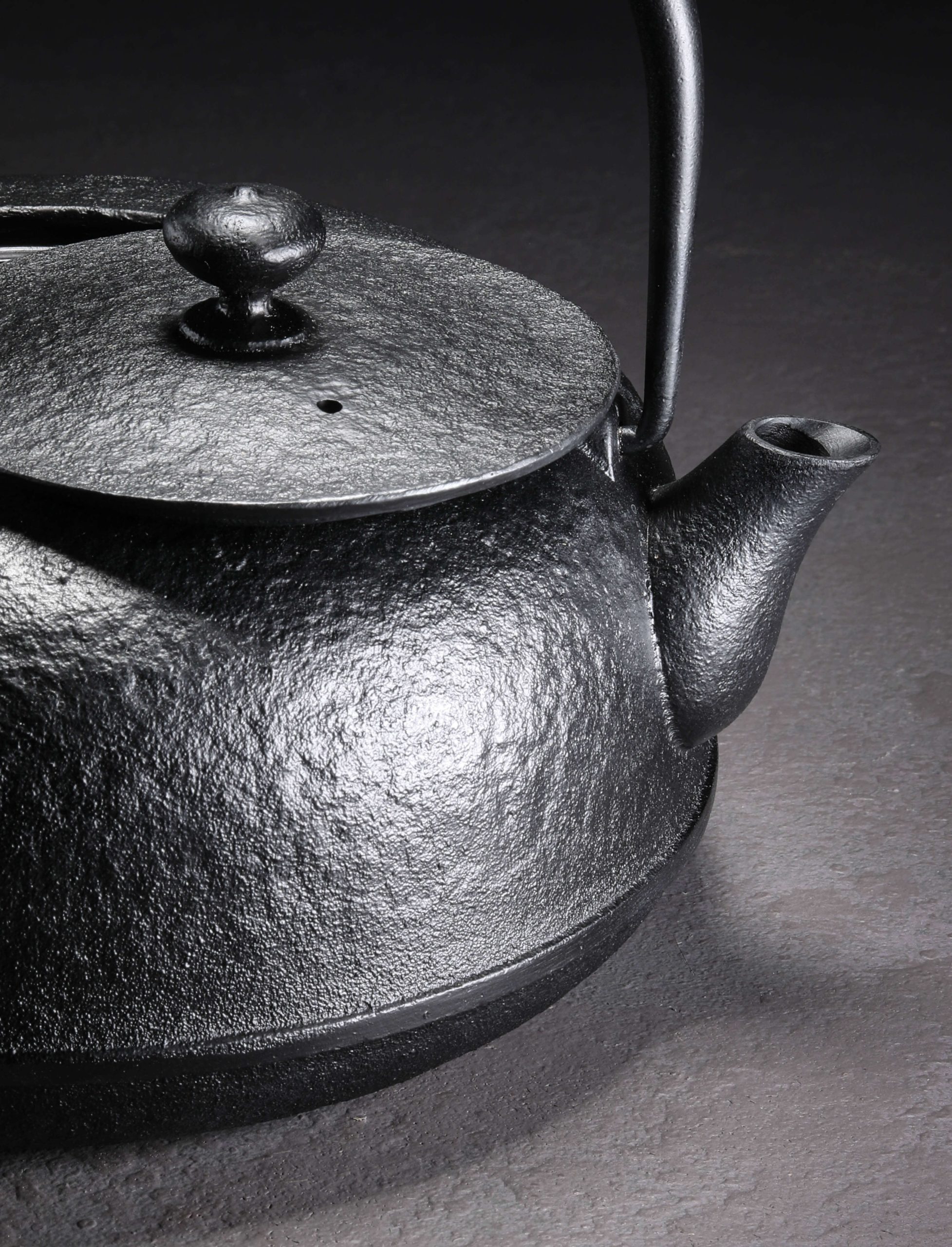 We’re excited to offer a small number of handcrafted iron tea kettles made in Mizusawa, Iwate, Japan and made available to us exclusively by our friends at Azmaya. With 1500 milliliter capacity, or approximately 50 ounces, these beautiful objects feature both cast and forged iron elements, forming the base, body, spout, handle, and fully removeable lid. Seasoned with tea tannins and finished with camellia oil, the dark, textured iron is ready for both electric and gas stove tops. Boil water at home for coffee and tea in stunning style.