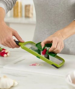 This handy gadget helps to create even slices of fruit or vegetables quickly and easily, whilst keeping your fingers safely away from its sharp stainless-steel blade.