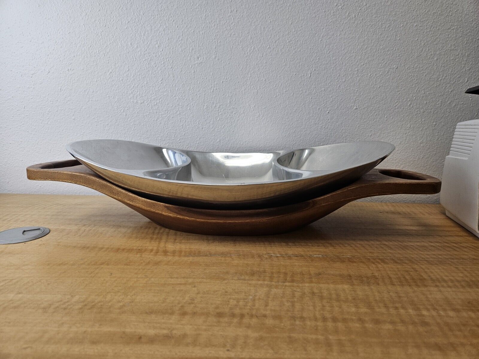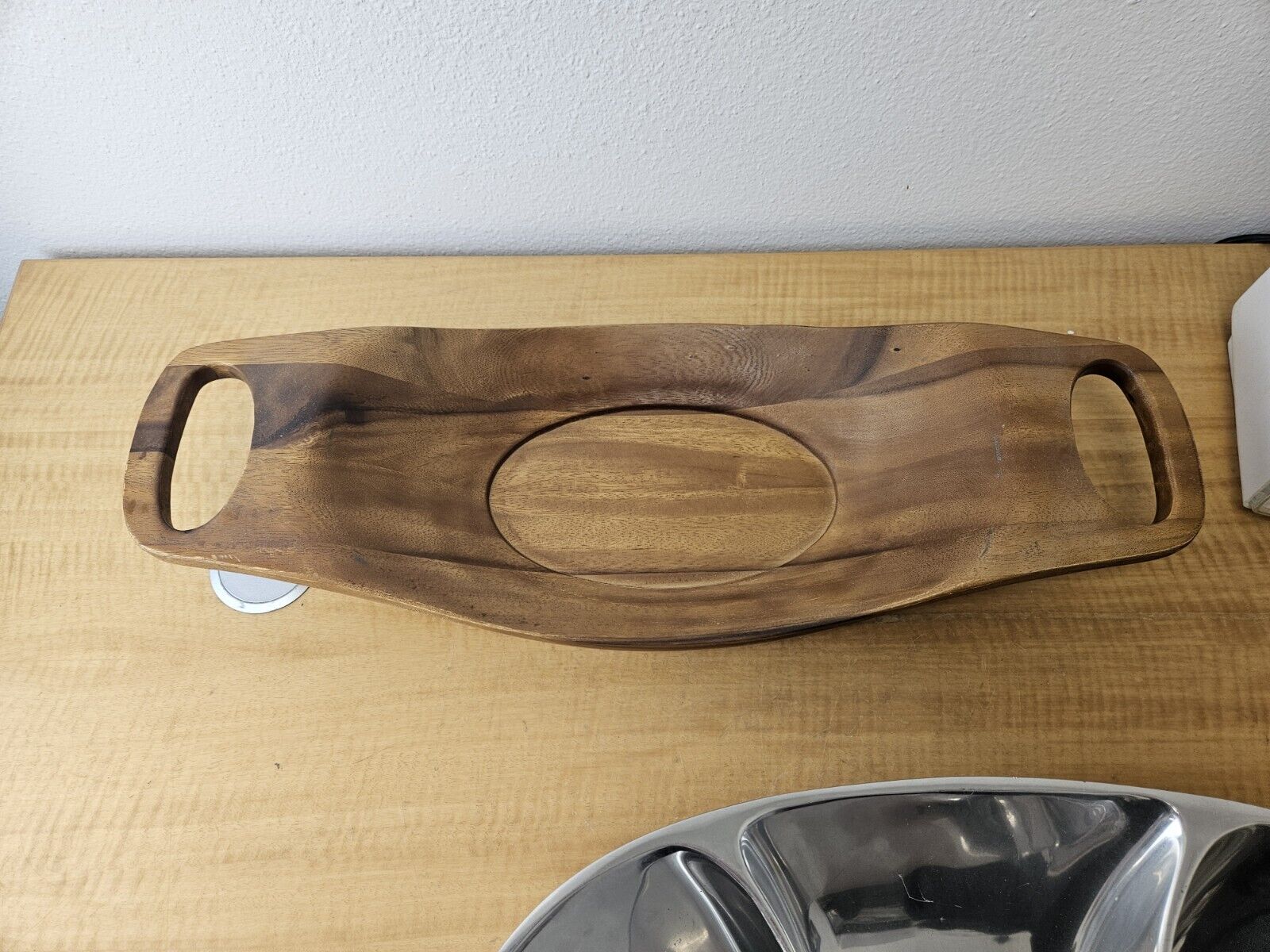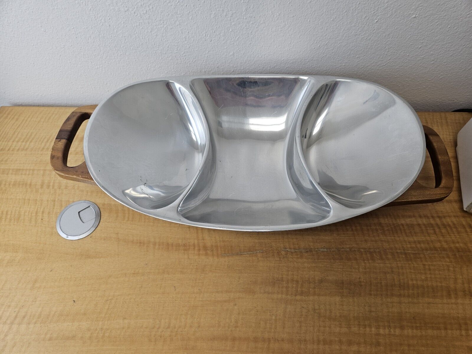 Nambé MT0378 2010 Steve Cozzolino 3 Section Divided Heavy Bowl in wood bowl 23”