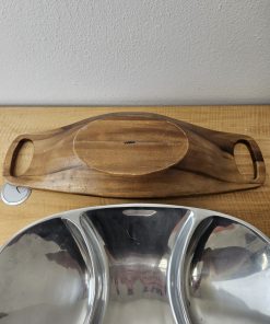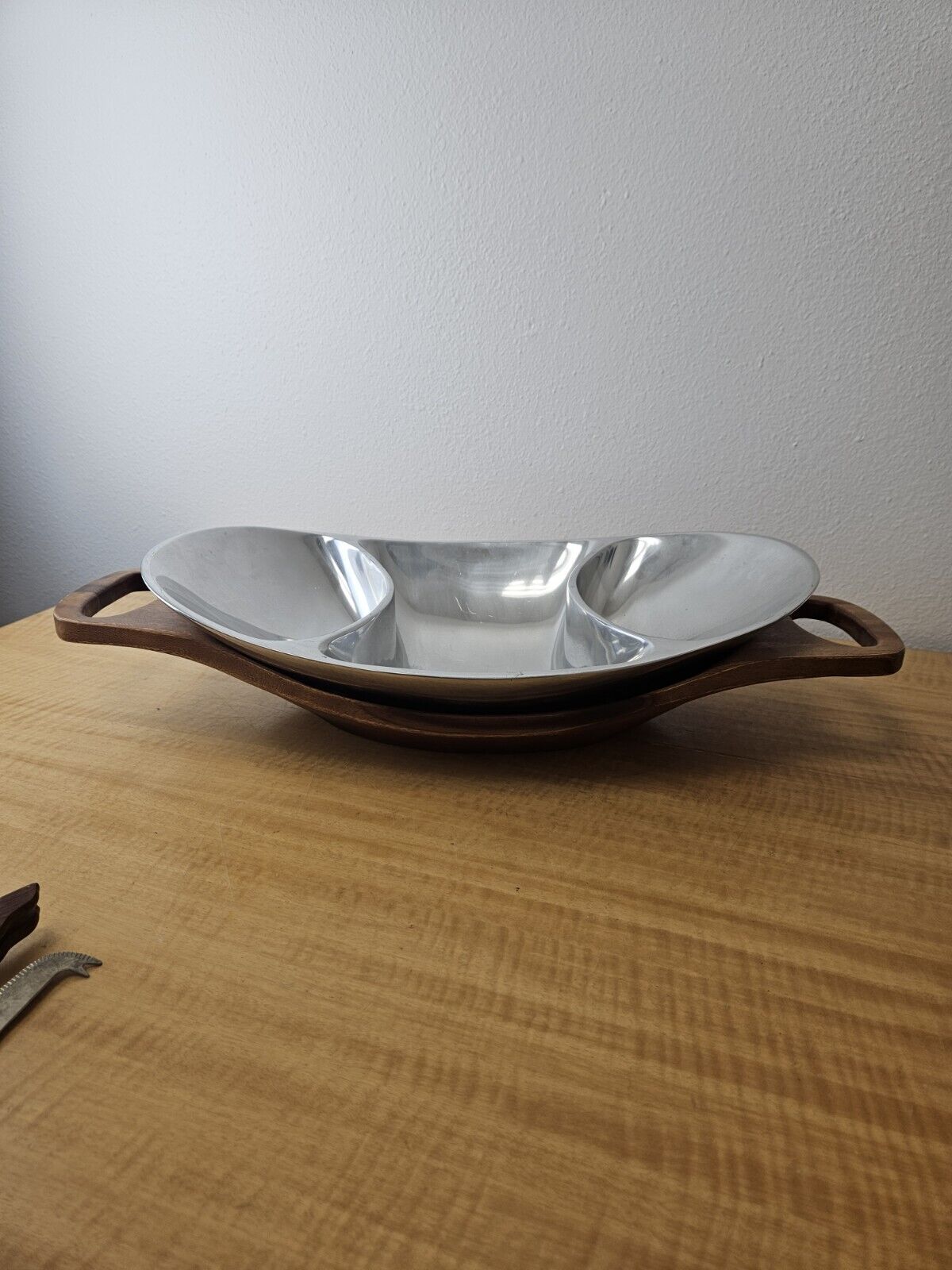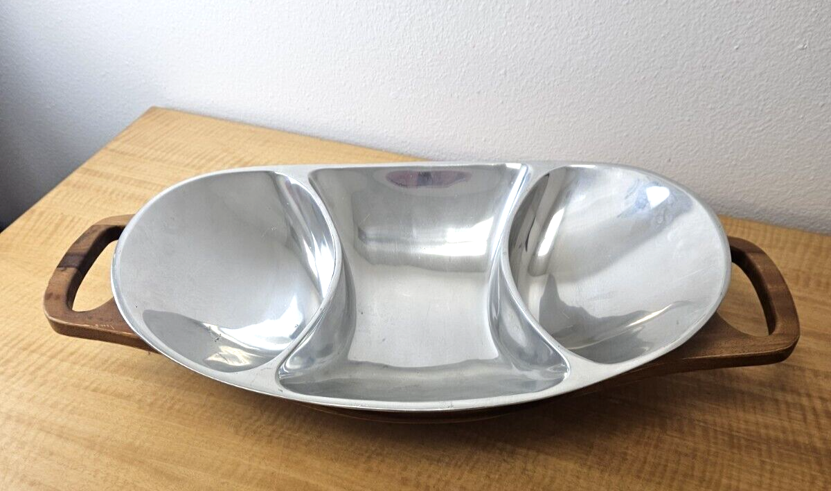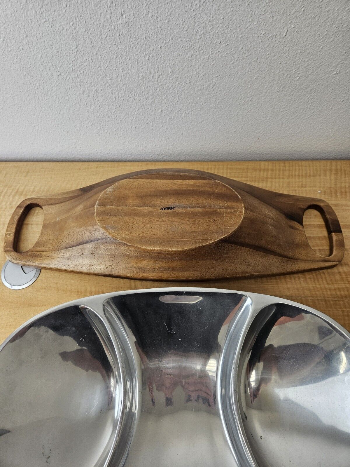 Nambé MT0378 2010 Steve Cozzolino 3 Section Divided Heavy Bowl in wood bowl 23”
