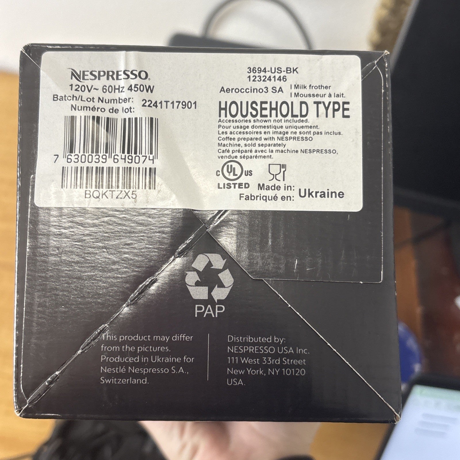 Nespresso Aeroccino 3 Milk Frother for Hot / Cold Milk Froth Black New Unused