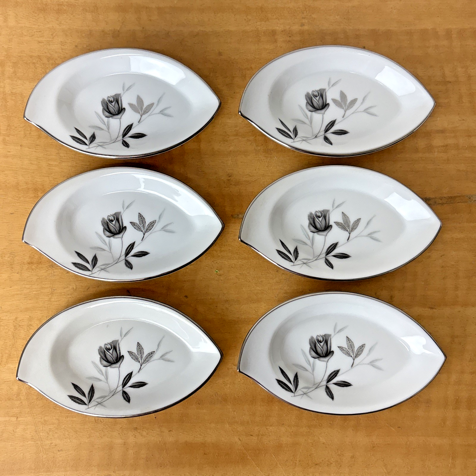 Noritake Rosamor 5851 Small Ashtray Silver White Gray Floral Set of 6