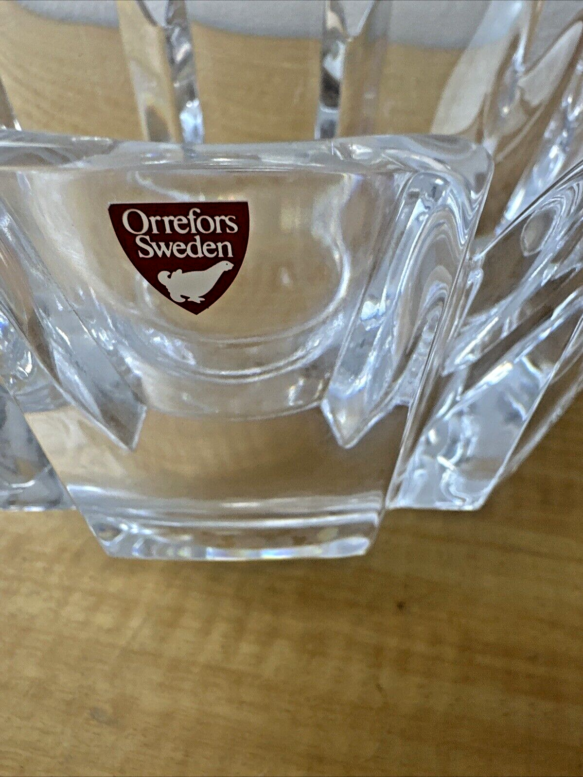 ORREFORS SWEDEN CORONA CRYSTAL BOWL LARS HELLSTEN 7-1/2” Signed