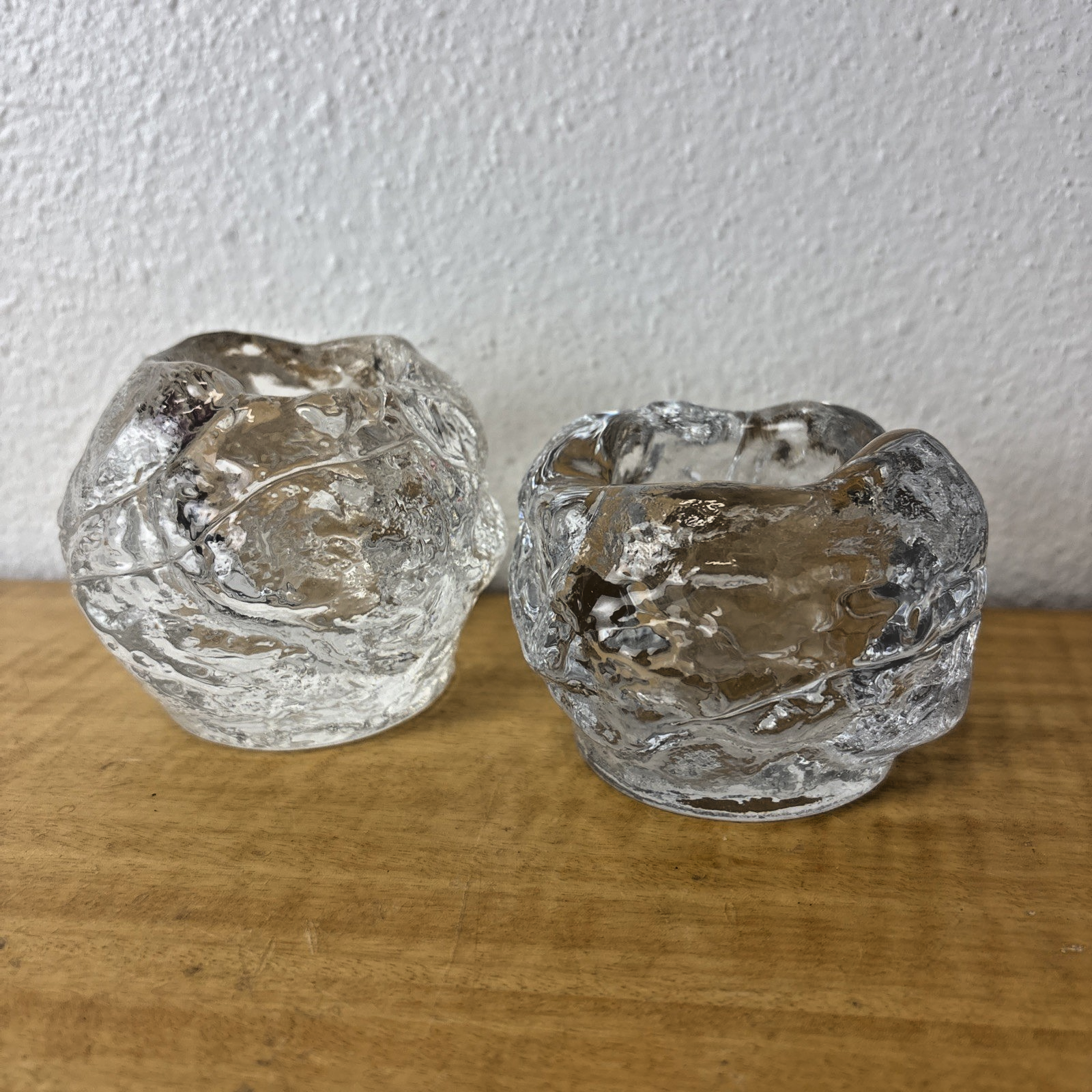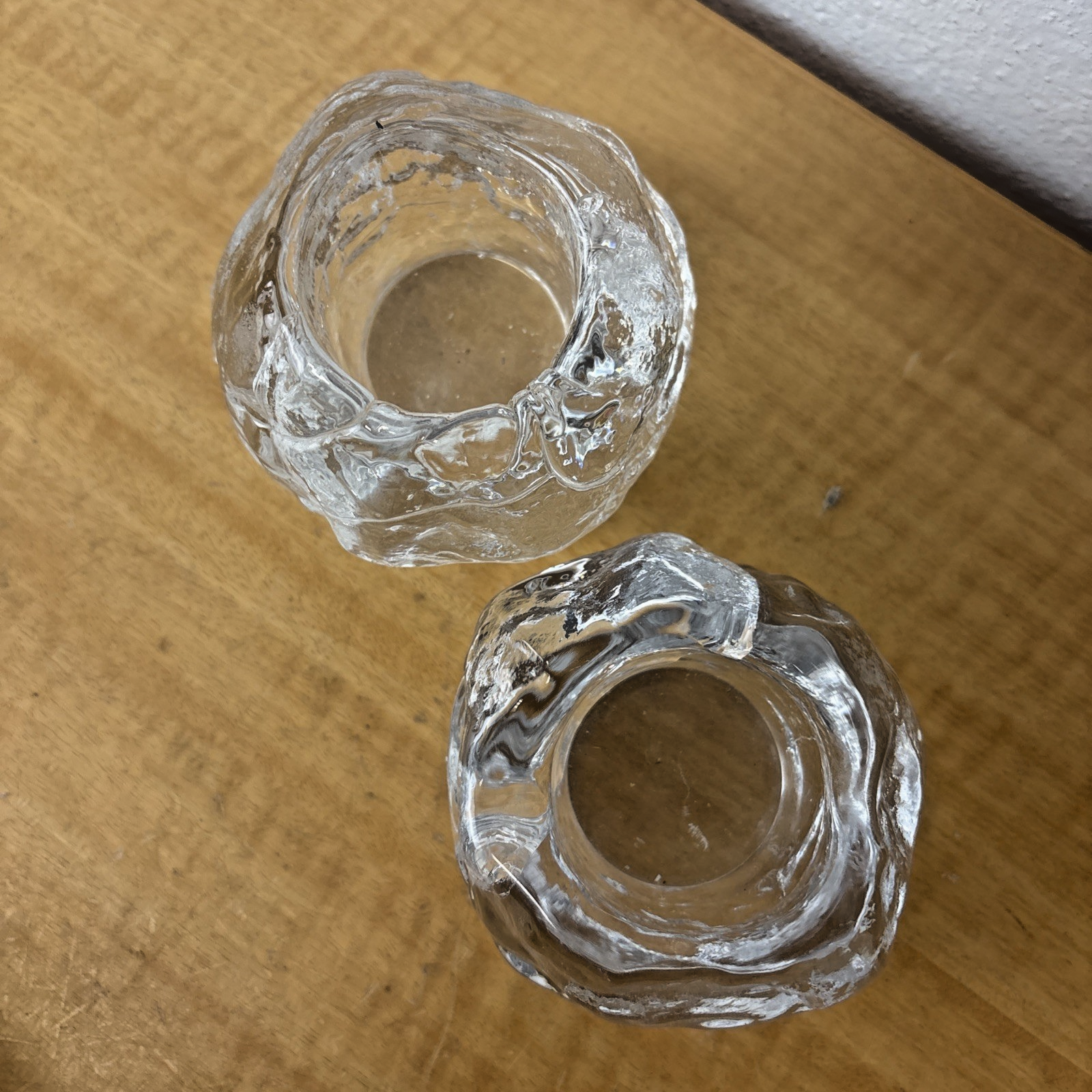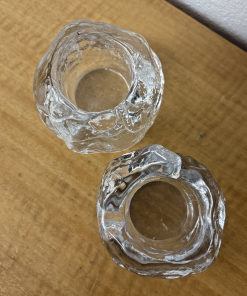 Pair Kosta Boda Look Alike Crystal Snowball Votive Candle Holders Ann Warff