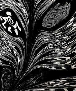 Rhode Island artist Joshua Prince’s contribution to The Art of Cutlery, a chef knife named “Peacock,” on show during summer 2024 in Tribeca, NYC, represents the maker’s eclectic eye, creative talents, and technical skills in an object that sacrifices neither form nor function. Forged from a feathered mosaic of varying damascus steel patterns of Joshua’s making, the blade features compound ‘S-grind’ bevel geometry in a versatile profile that reaches nearly 11″ in length. Beyond the blade’s choil, the damascus’s pattern condenses into the shape of the sculpted, integral handle bolster, through which the feathering concentrates, before appearing to be devoured by a ring of synthetic opal. To complete the sculpted, comfortable grip is a piece of carved bocote wood. This knife is razor-sharp and crafted for culinary use.