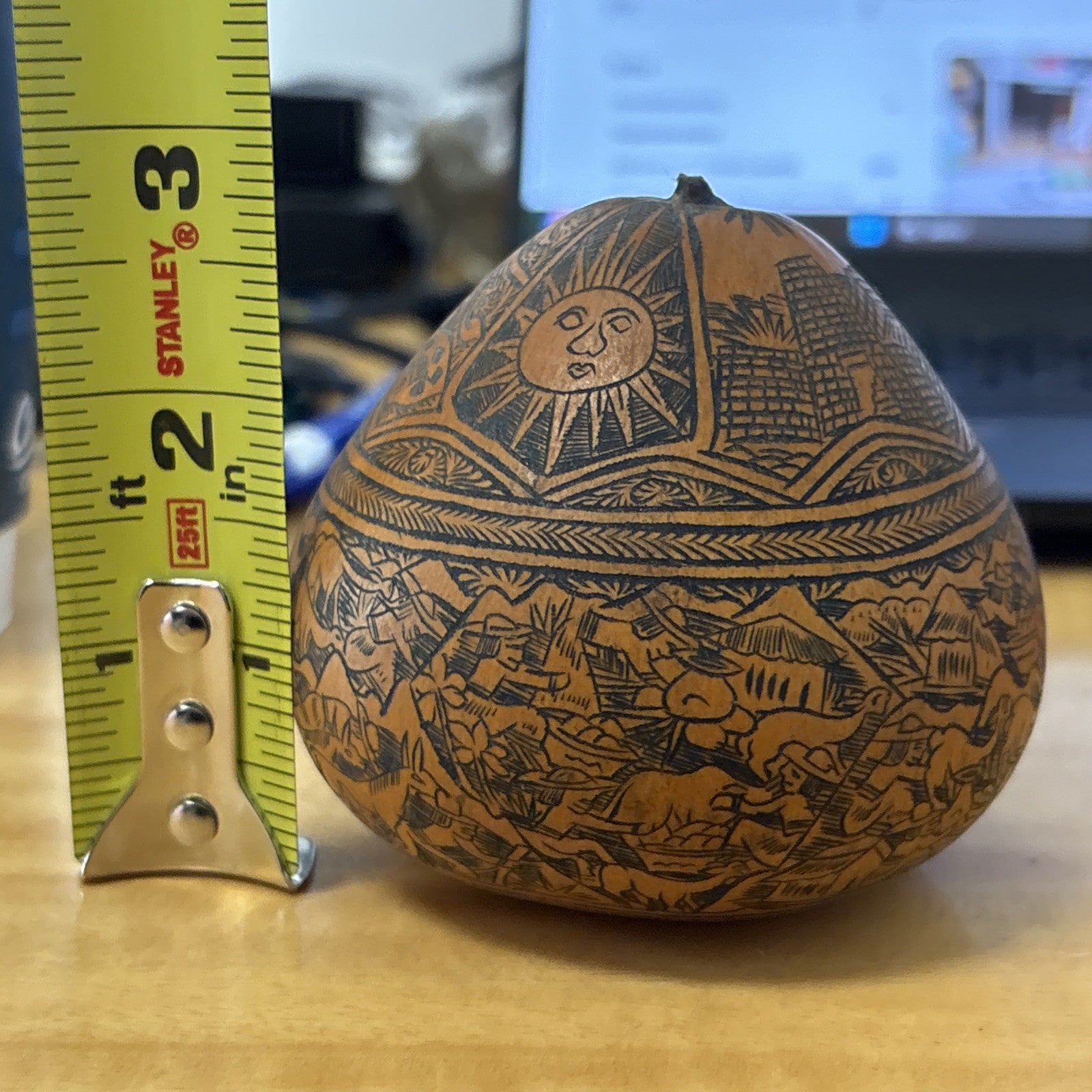 Peruvian Folk Art Gourd Exquisite Etched
