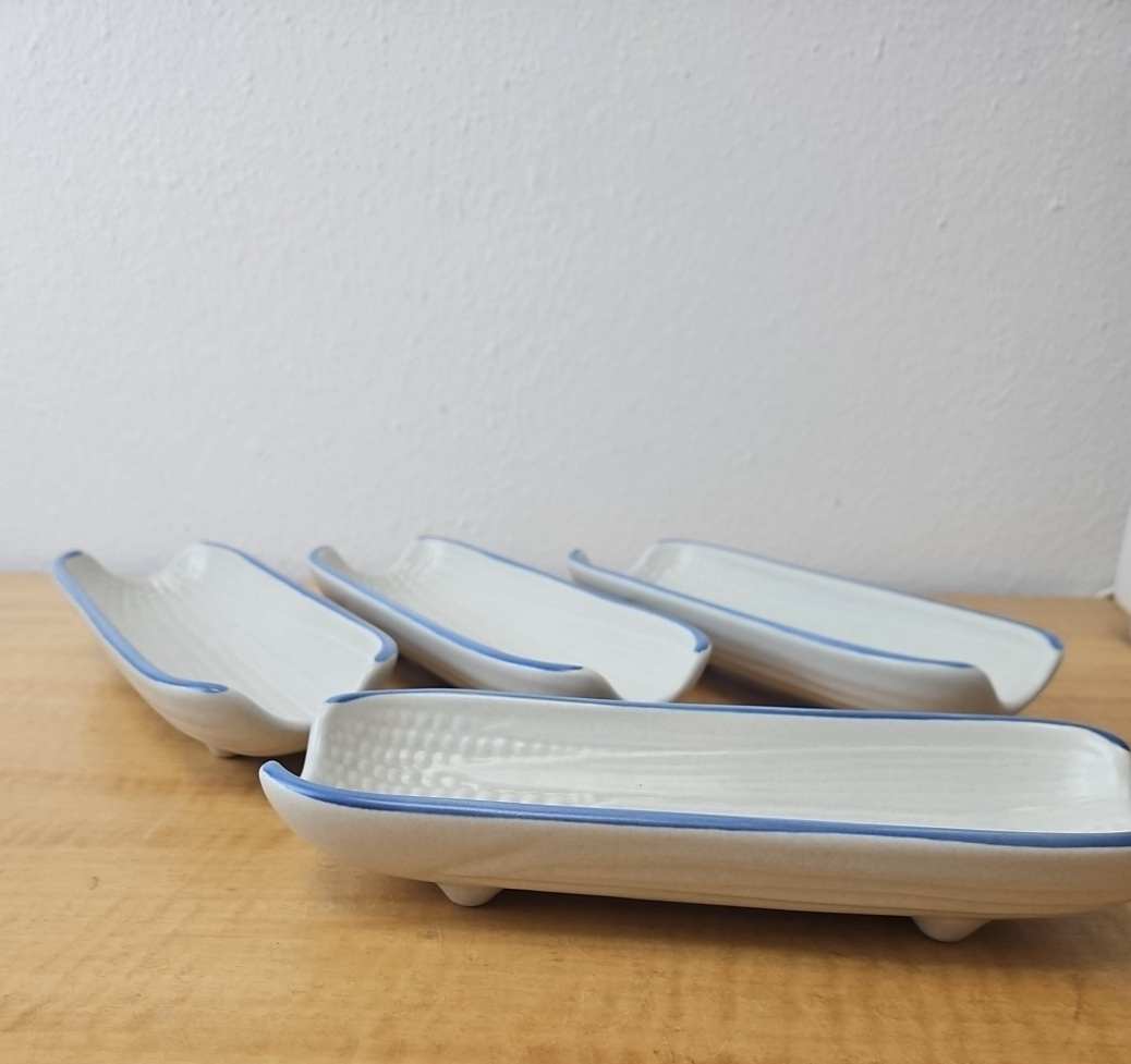 Pfaltzgraff “Yorktowne” Corn On The Cob footed holder dish tray USA Set of 4