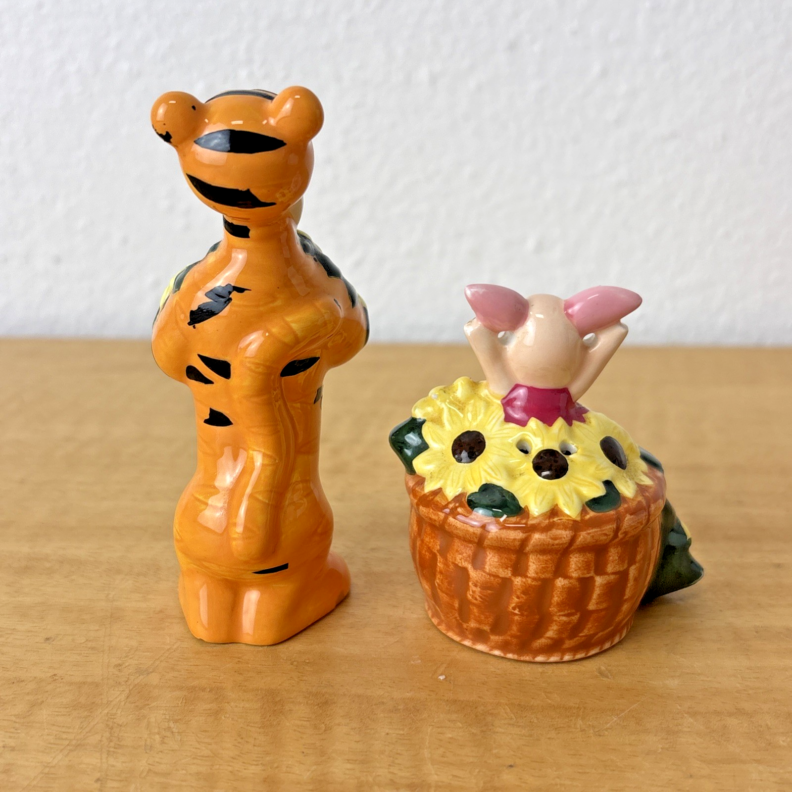 Piglet and Tigger Gardening Salt & Pepper Shakers 90s Sunflowers Vintage